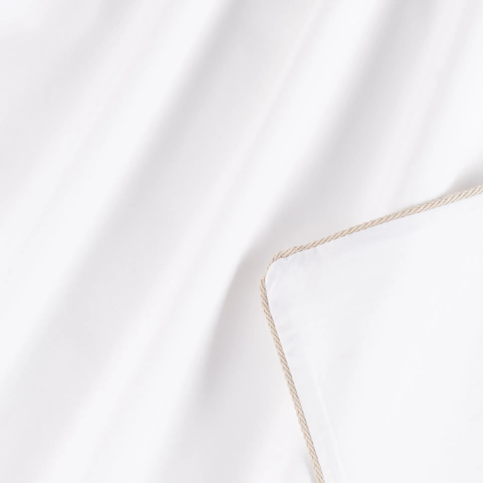 De très grande qualité, la housse de couette Ezio est confectionnée en percale de coton, un tissage serré qui assure une incroyable sensation de douceur et de fraîcheur. Entièrement blanche, cette housse de couette en percale de coton illumine la pièce de sa seule présence. L’ensemble est délicatement réhaussé d’un liseré tressé, détail beige qui apporte une touche d’authenticité. Cette housse de couette de 260×240 cm convient pour un grand lit de 160×200 cm.