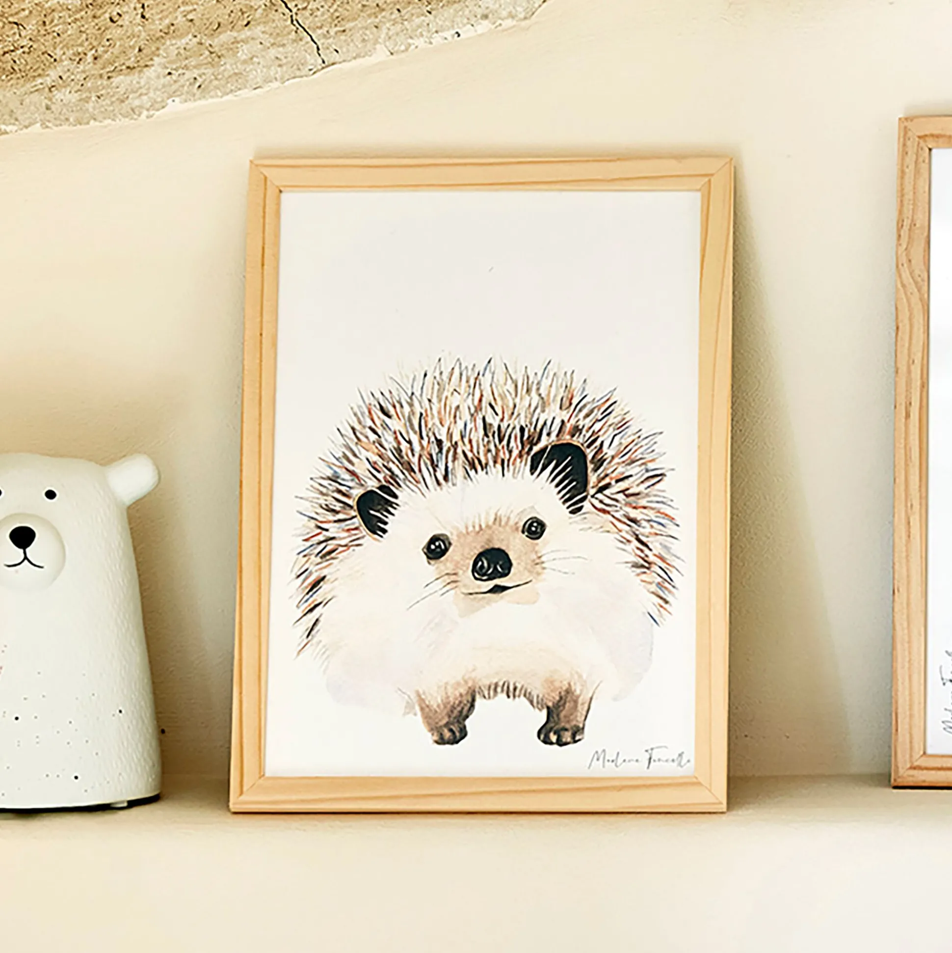 Egayez la chambre enfant avec une aquarelle originale, peinte à la main par Marlène Farcelli. Cette décoration murale ou à poser participe à une ambiance cocooning. Ses nuances claires et naturelles mettent en scène un hérisson dans un univers doux et rassurant. Nommé Auré le Hérisson, ce petit animal sera le nouveau compagnon de votre enfant. Cette illustration enfant est aussi mignonne que ludique. Elle est mise en valeur par un cadre en pin massif et protégée par une vitre en plexiglas.