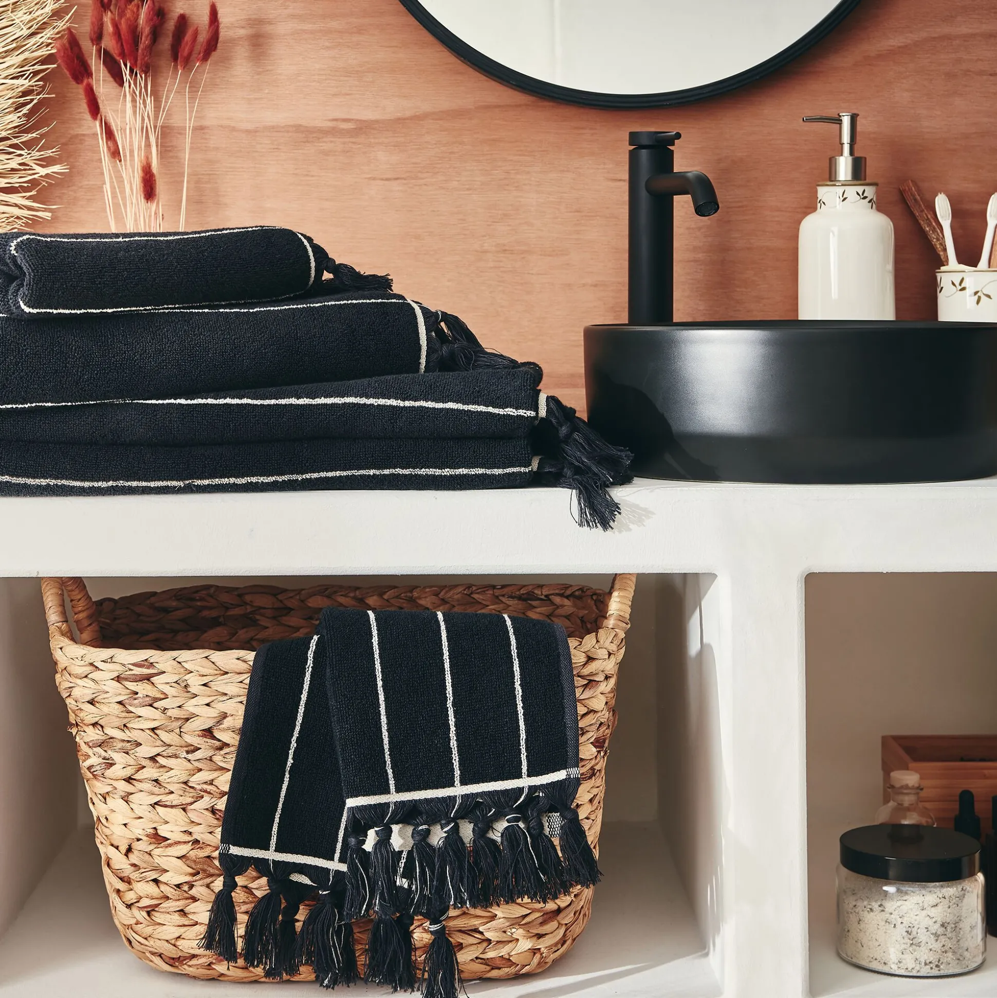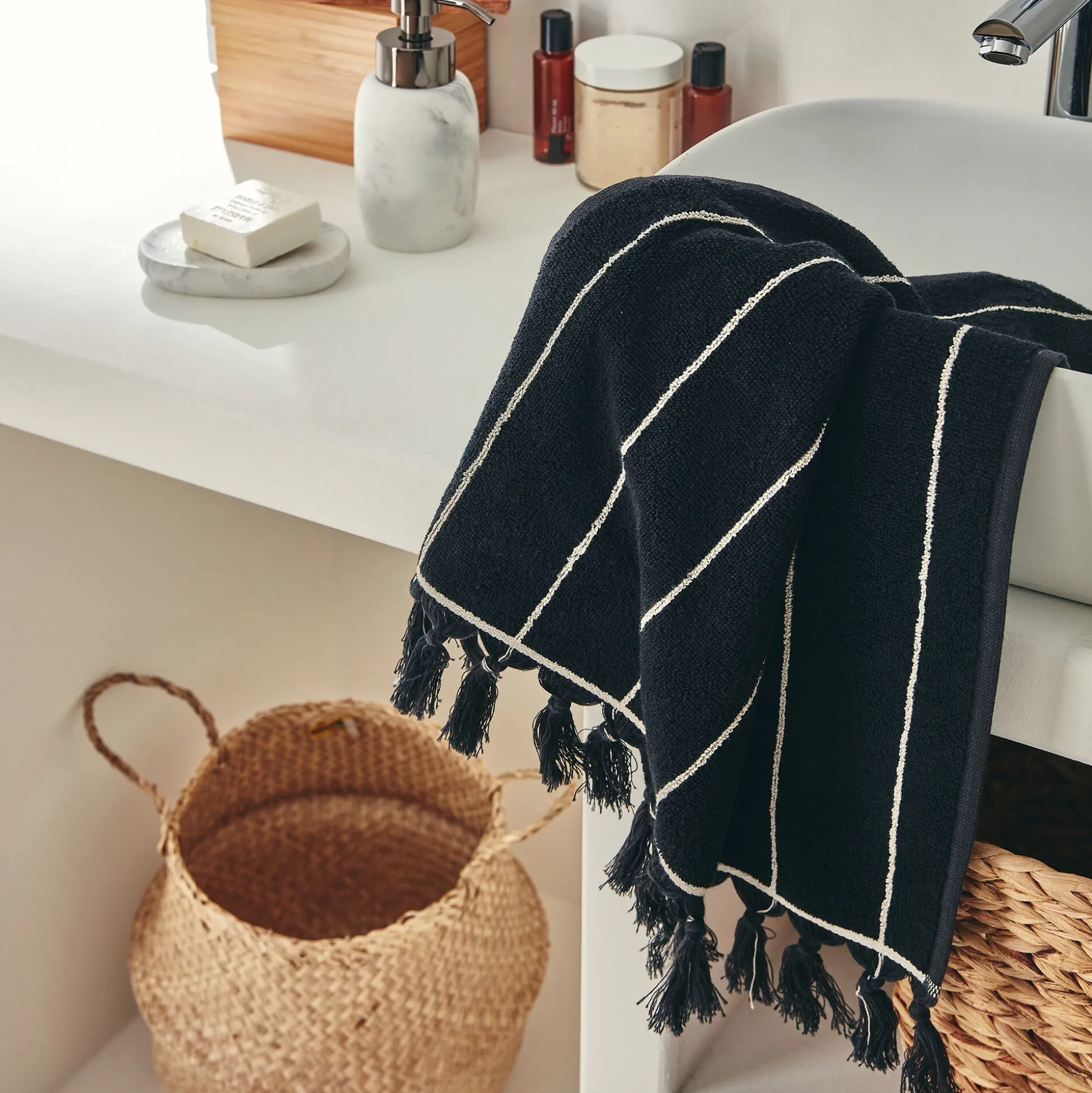 Linge de toilette rayé en coton – noir
