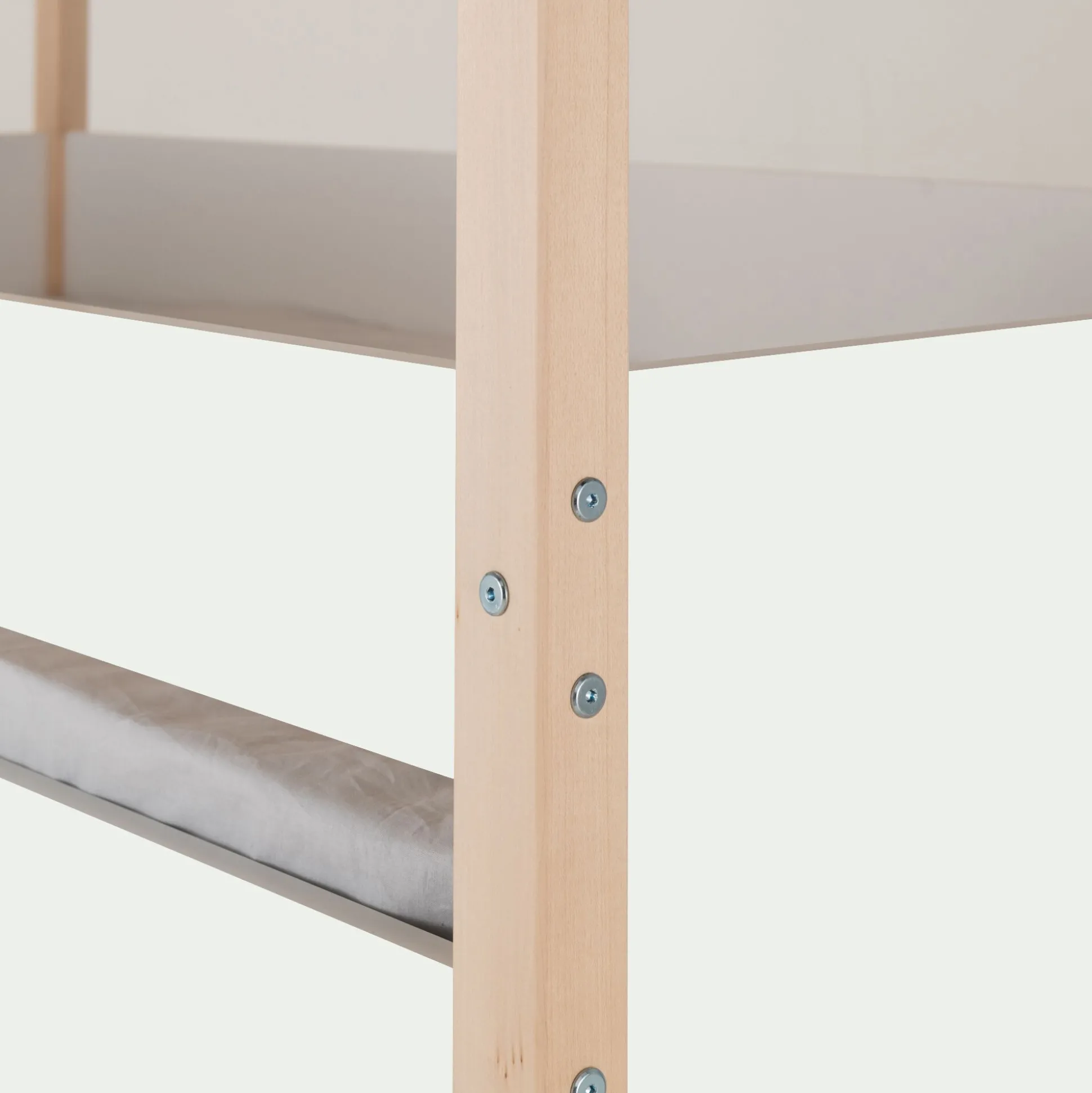 Le lit enfant Piloti a tout pour plaire. Inspiré d’une maison sur pilotis, ce lit en hauteur présente un toit en tilleul. Véritable petite cabane, ce lit sur pilotis stimule l’imagination et la créativité de votre enfant. Terrain d’aventure, de très belles histoires naîtront sous ce toit en bois. Légèrement surélevé, ce lit cabane blanc est vendu avec deux tiroirs de rangement coulissants. Ces derniers sont dissimulés sous le lit et laissent les vêtements, accessoires et jouets de votre tout petit à portée de main. Ainsi, ce dernier est plus autonome et la chambre enfant reste toujours bien rangée, avec un espace au sol optimisé. Ce lit cabane en bois mesure 90×200 cm, une taille idéale pour les enfants de 5 à 10 ans.