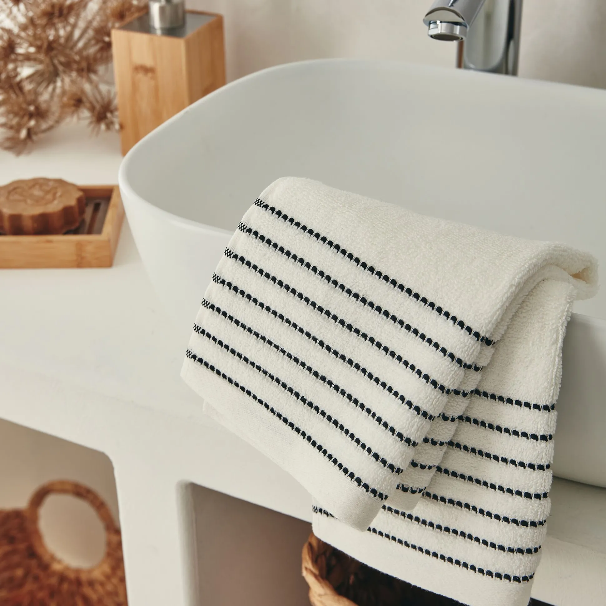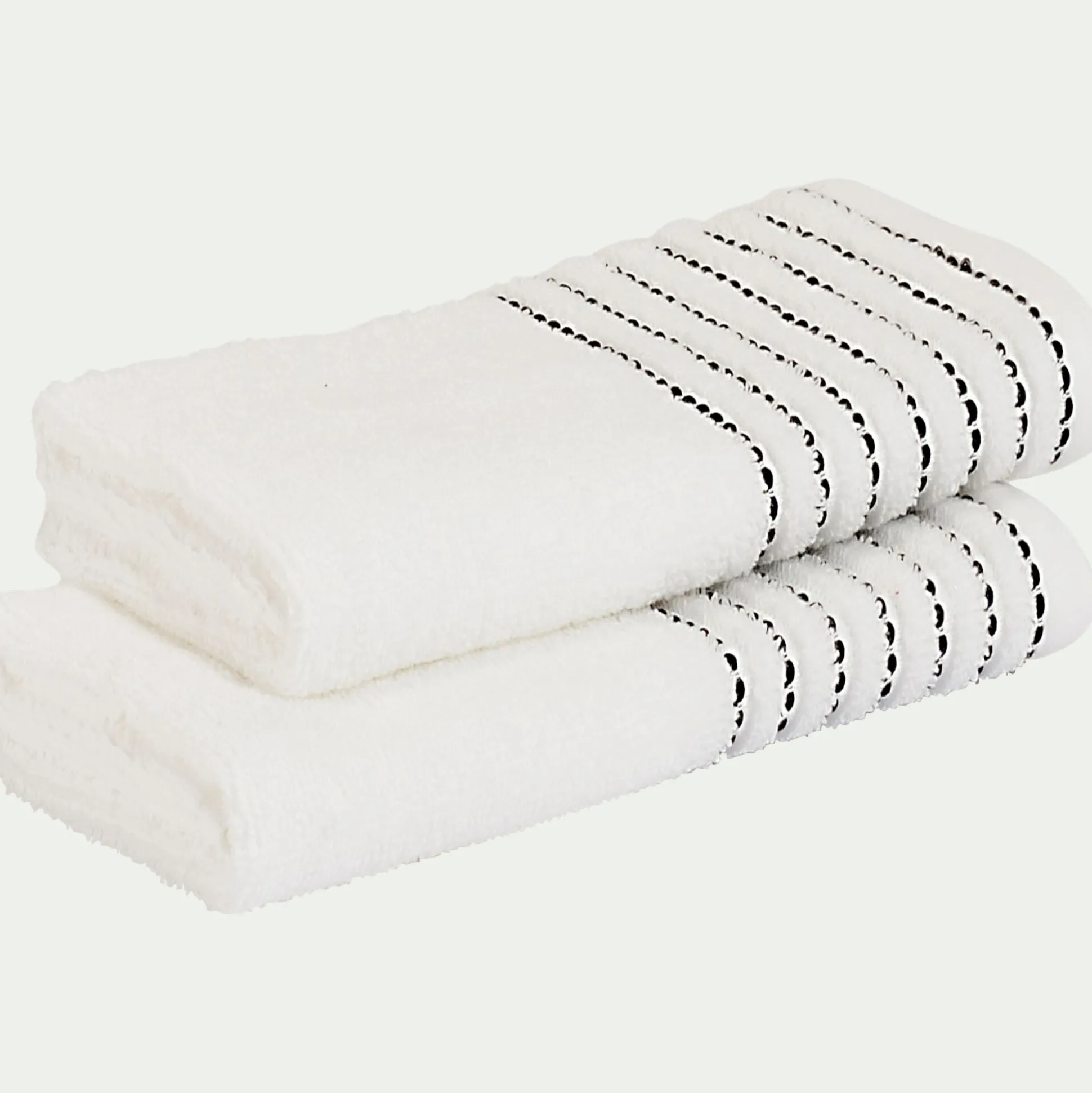 Chic et élégant, optez pour la collection Rhodes pour votre linge de toilette. Découvrez ce lot de 2 serviettes pour invité 100% en coton, fabriquée au Portugal et offrant un grammage épais. Du fait de son grammage, elles absorbent très efficacement l’eau et s’avèrent aussi très douces. Elles permettent par ailleurs de se sécher rapidement. Ces serviettes de douche arborent des couleurs sobres et un design épuré qui sauront s’adapter à la déco de votre salle de bain. Découvrez le reste de la gamme, afin d’offrir le maximum de confort à vos convives.