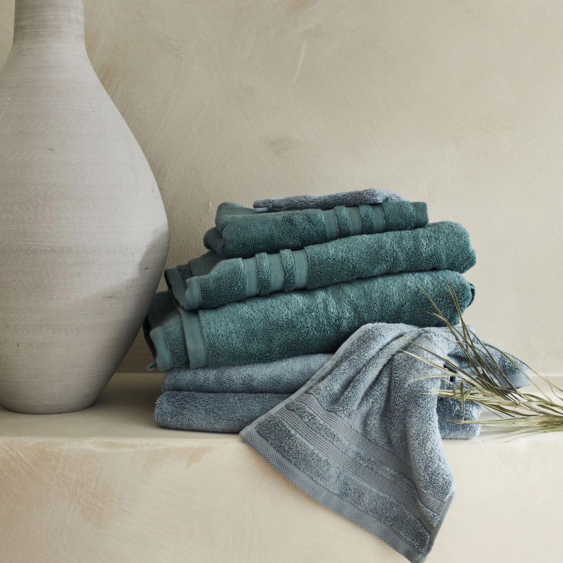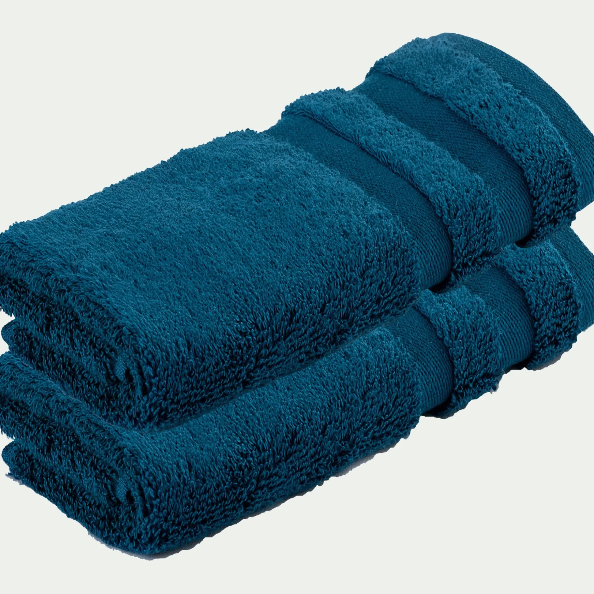 Découvrez la gamme de linge de toilette Rania. Elle vous accompagne au quotidien. Ici, nous vous présentons un lot de 2 serviettes invité dans un coloris bleu figuerolles. C’est un souffle d’air marin qui s’invite dans votre salle de bains. Faisant preuve d’une grande résistance à l’usage, ces serviettes de douche 100% coton fabriqués au Portugal sont une source de tendresse et délicatesse pour votre peau lorsque vous vous lavez. Dans la même collection, retrouvez aussi des draps de bain, serviettes de bain et gants de toilette, afin de créer un bel ensemble. Cette gamme existe dans un autre coloris.