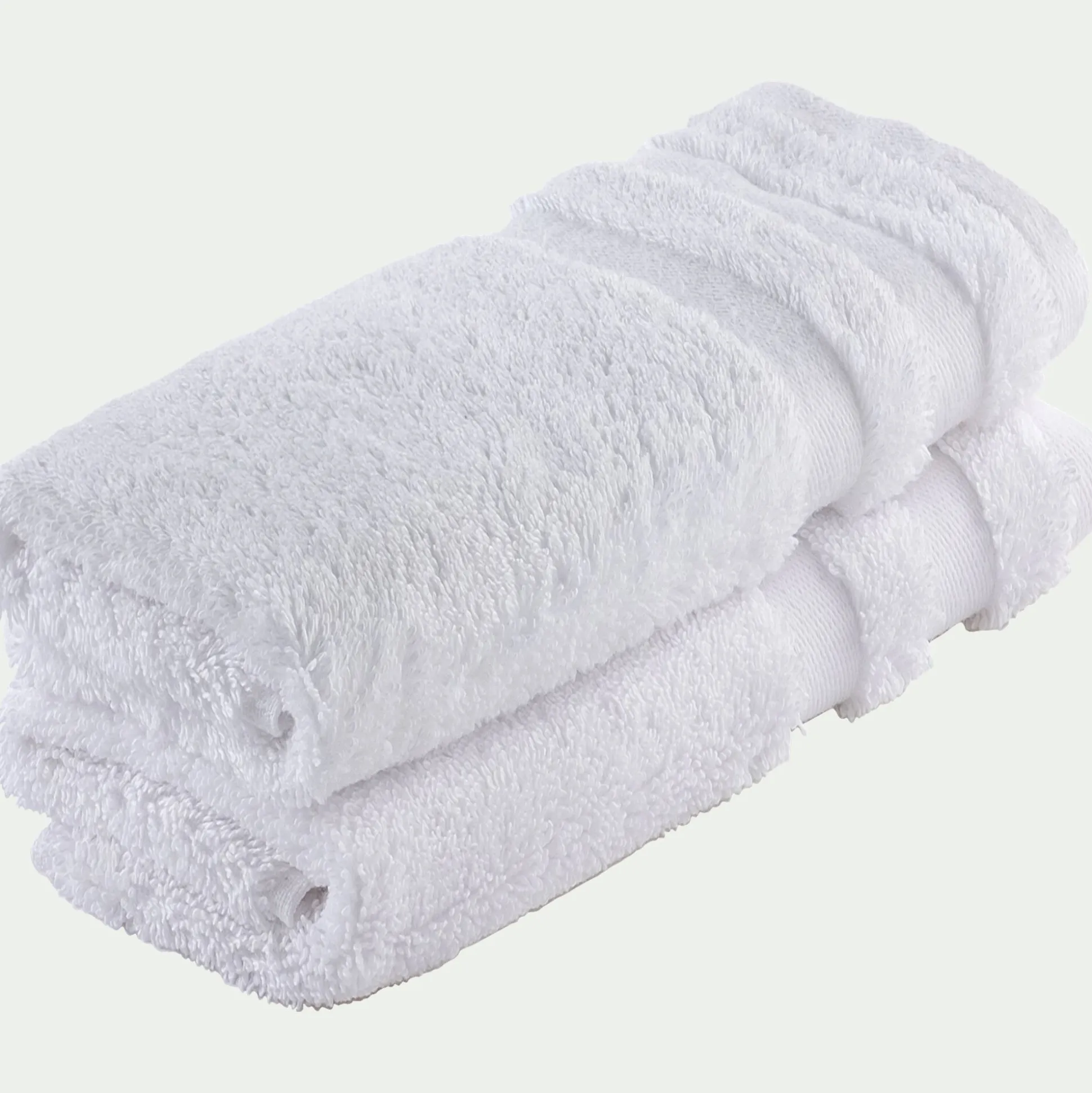 Découvrez le linge de toilette Riviera. Confectionné au Portugal, le fil de chaque article est constitué sans torsion, ce qui fait que son épaisseur et sa résistance sont plus importantes. La fibre du coton apparaît plus gonflante et plus légère. Retrouvez ici, un lot de 2 serviettes invité 100% en coton blanc, pour se sécher efficacement et tout en douceur. Complétez cette serviette avec les autres modèles de serviettes de bain, les gants de toilette, le drap de douche, tapis de douche et le reste de la collection pour créer un bel ensemble.