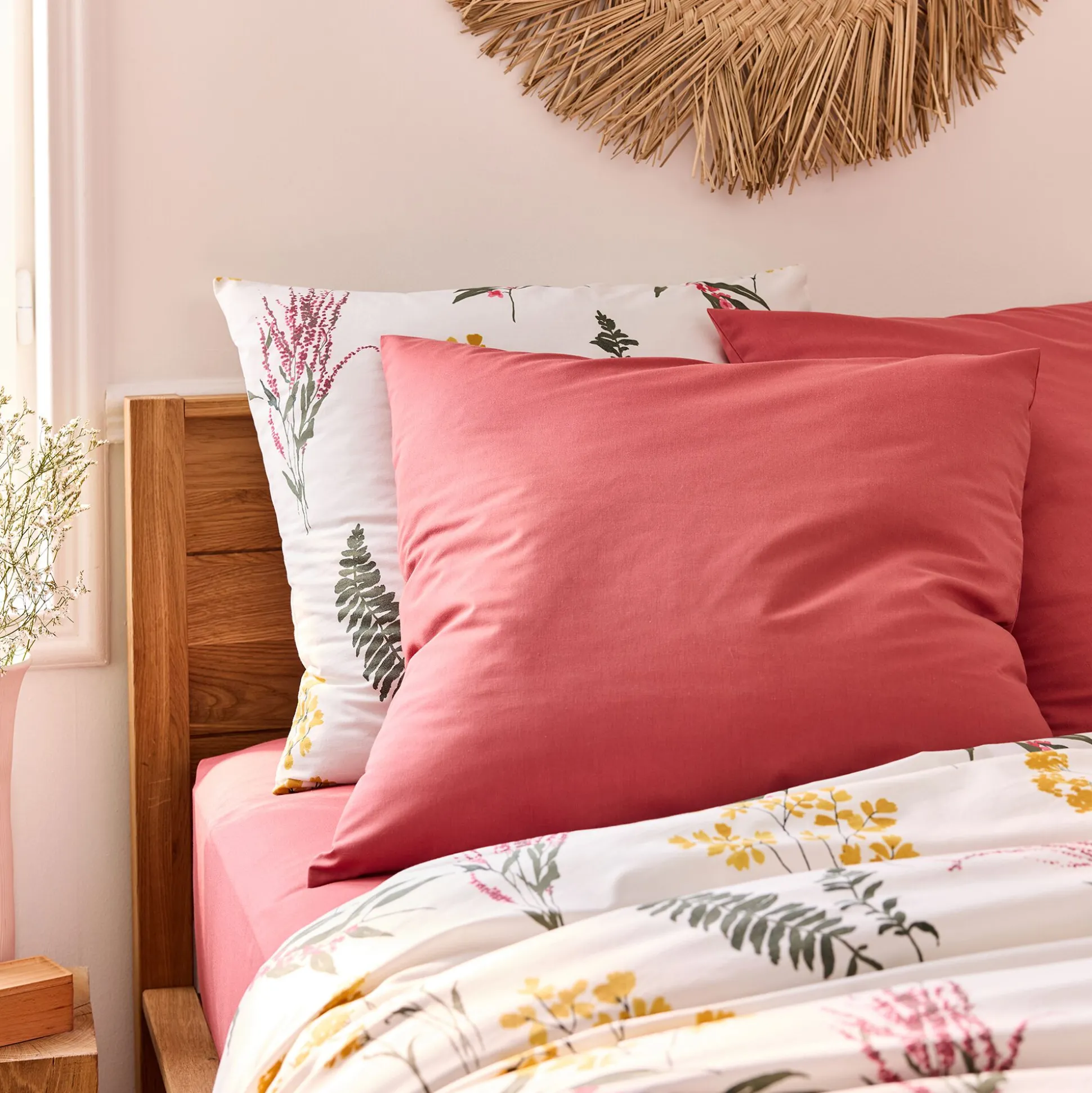 Lot de 2 taies d’oreiller en coton 65x65cm – rose framboise