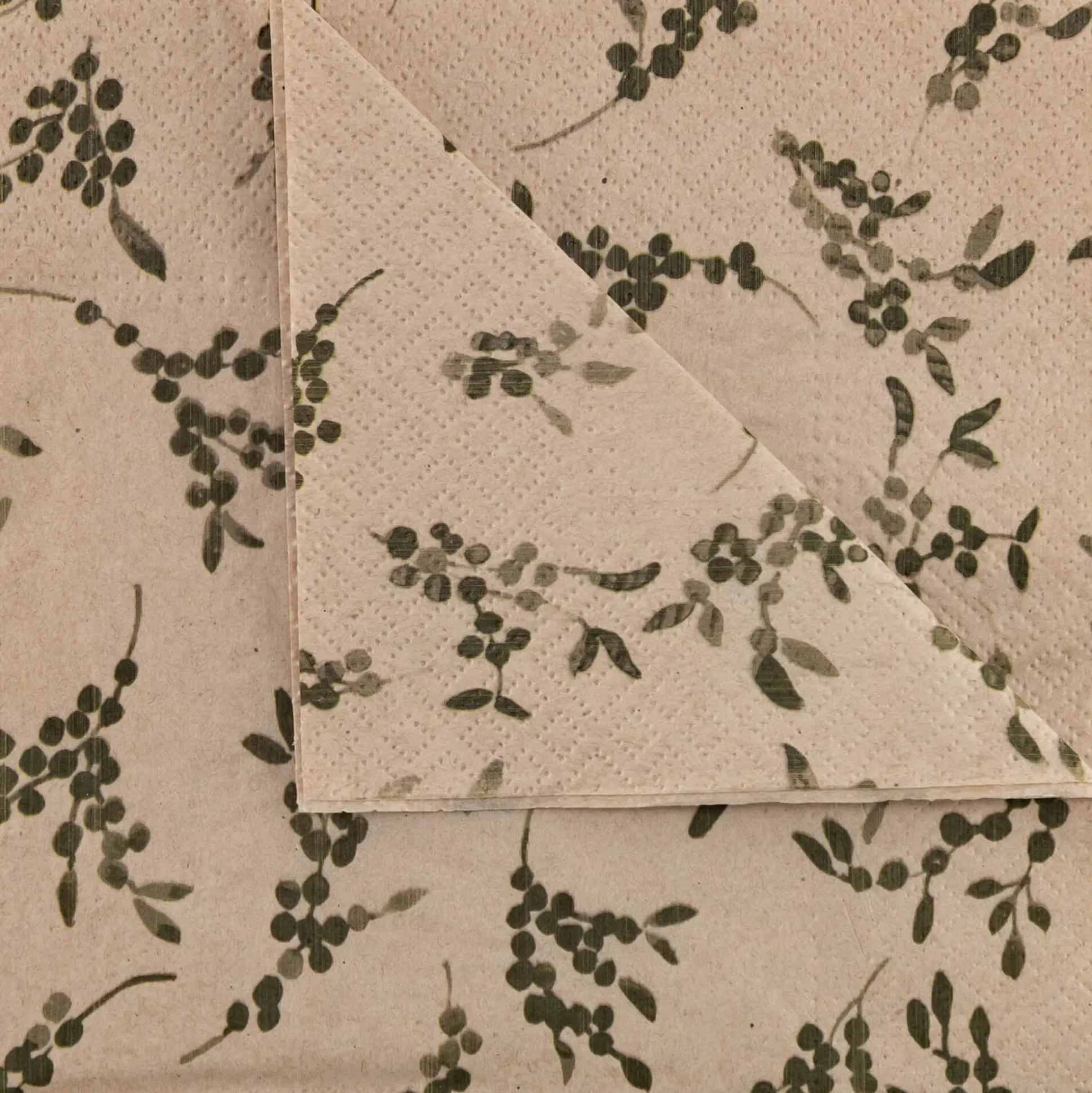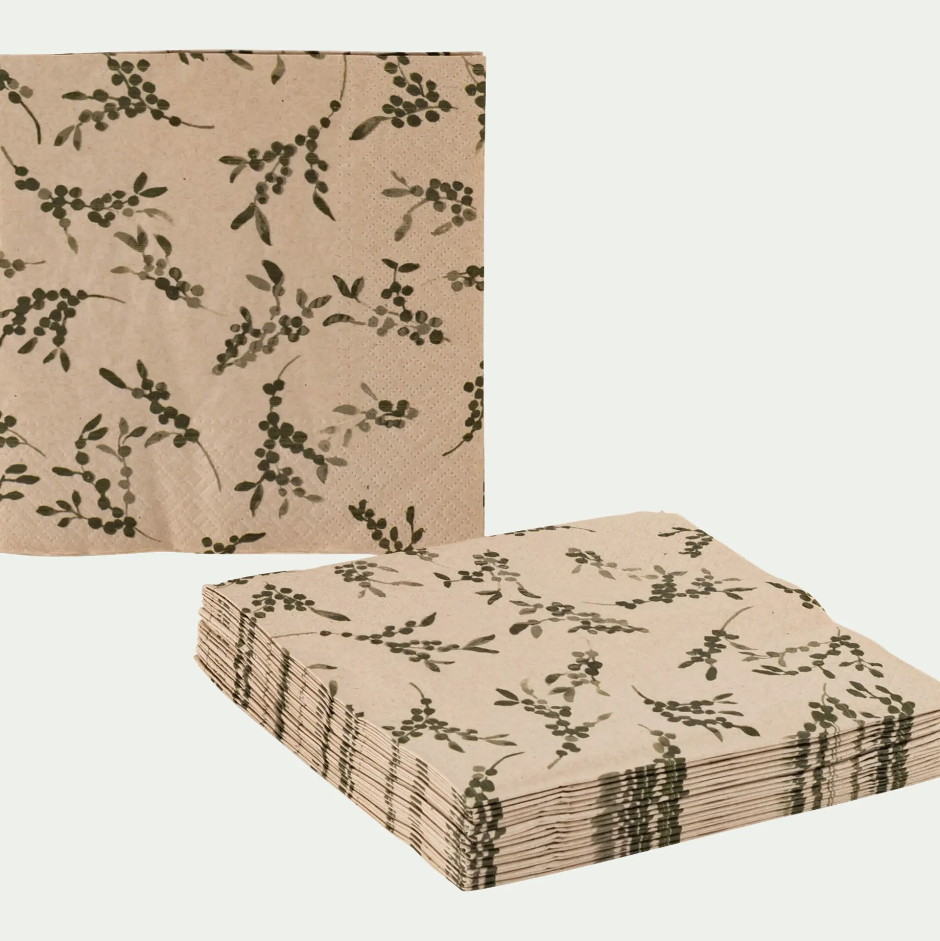 Avec leur fond beige et leurs motifs de petites fleurs vertes, ces serviettes en papier apportent une touche naturelle à votre table. Douces et élégantes, elles insufflent un charme subtil à la déco de vos repas. Idéales pour un dîner improvisé ou une occasion spéciale, elles garantissent un style soigné et délicat.