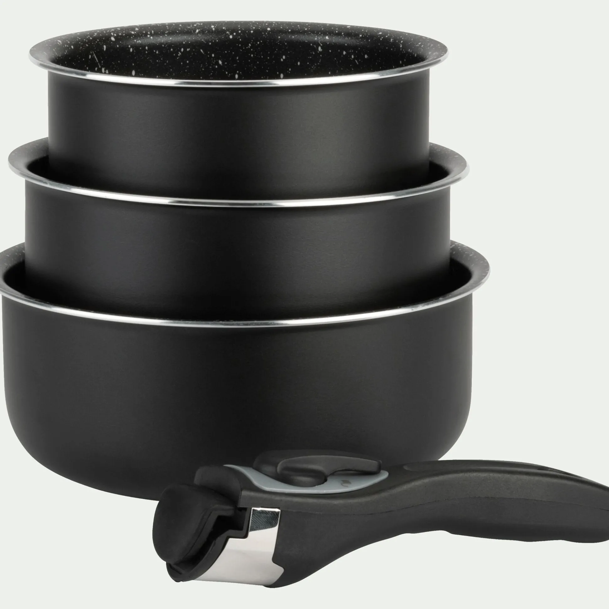 Lot de 3 casseroles en aluminium avec manche amovible (tous feux dont induction)