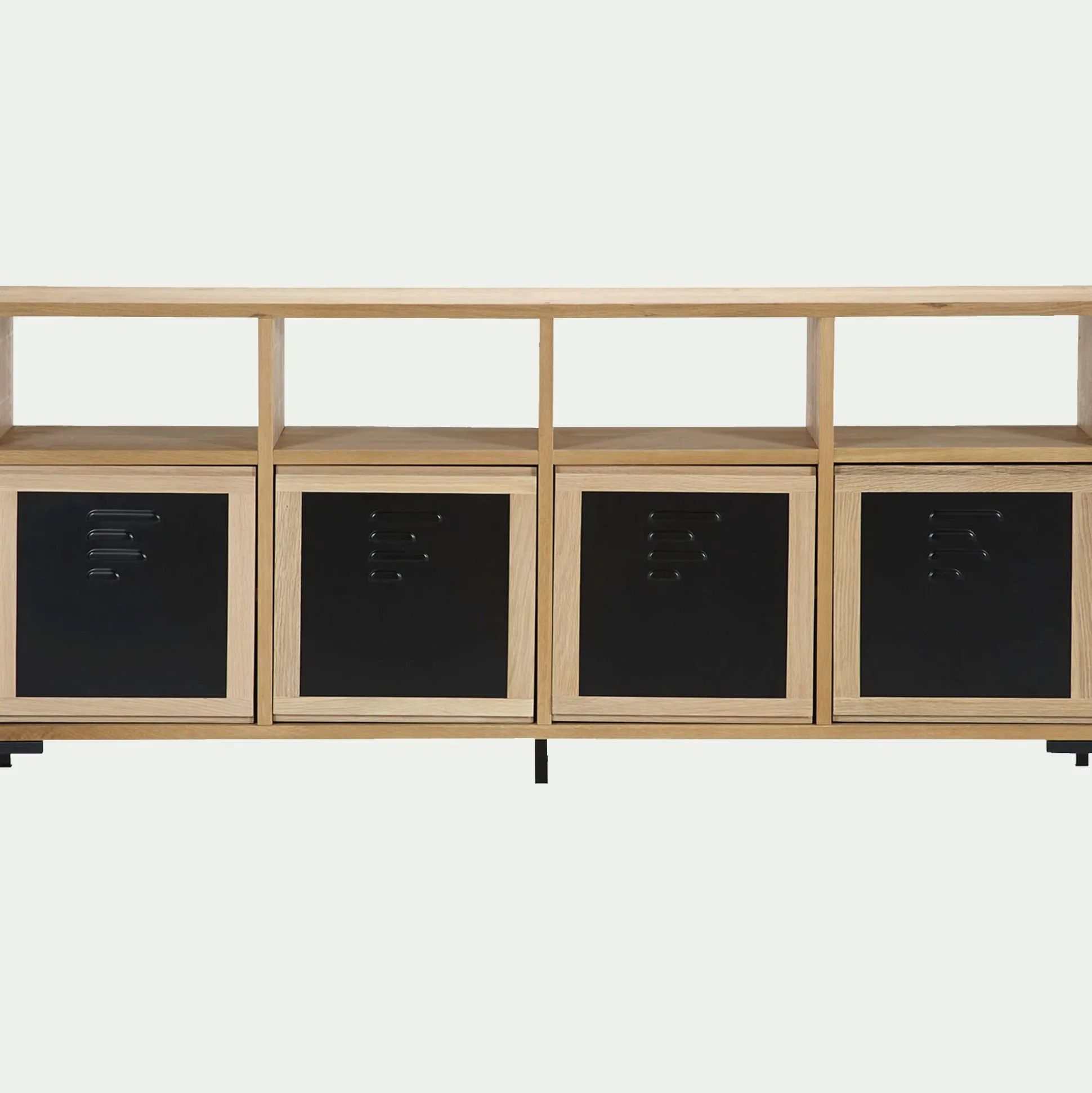 Ce lot de 3 pieds en métal se fixe sous votre composition Tassia afin de la surélever et la mettre en valeur. Cette gamme de meubles de salon se module au gré de vos besoins grâce à ses structures positionnables à la verticale ou à l’horizontale, et se personnalise avec ses portes, tiroirs et piètements.