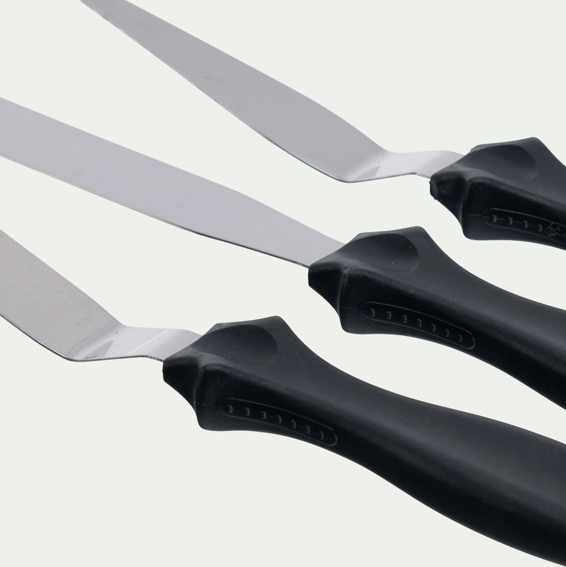 Ce lot de 3 spatules de précision est l’allié idéal pour les amateurs de pâtisserie soucieux du détail. Conçues pour manier avec finesse les crèmes, ganaches ou glaçages, elles permettent d’atteindre chaque recoin de moule ou de lisser parfaitement la surface des entremets. Chaque spatule en inox, de forme et de taille différente, offre une maniabilité optimale pour s’adapter à toutes les étapes de la création. Que ce soit pour étaler, décorer ou racler avec précision, ce trio polyvalent garantit un résultat net et professionnel.