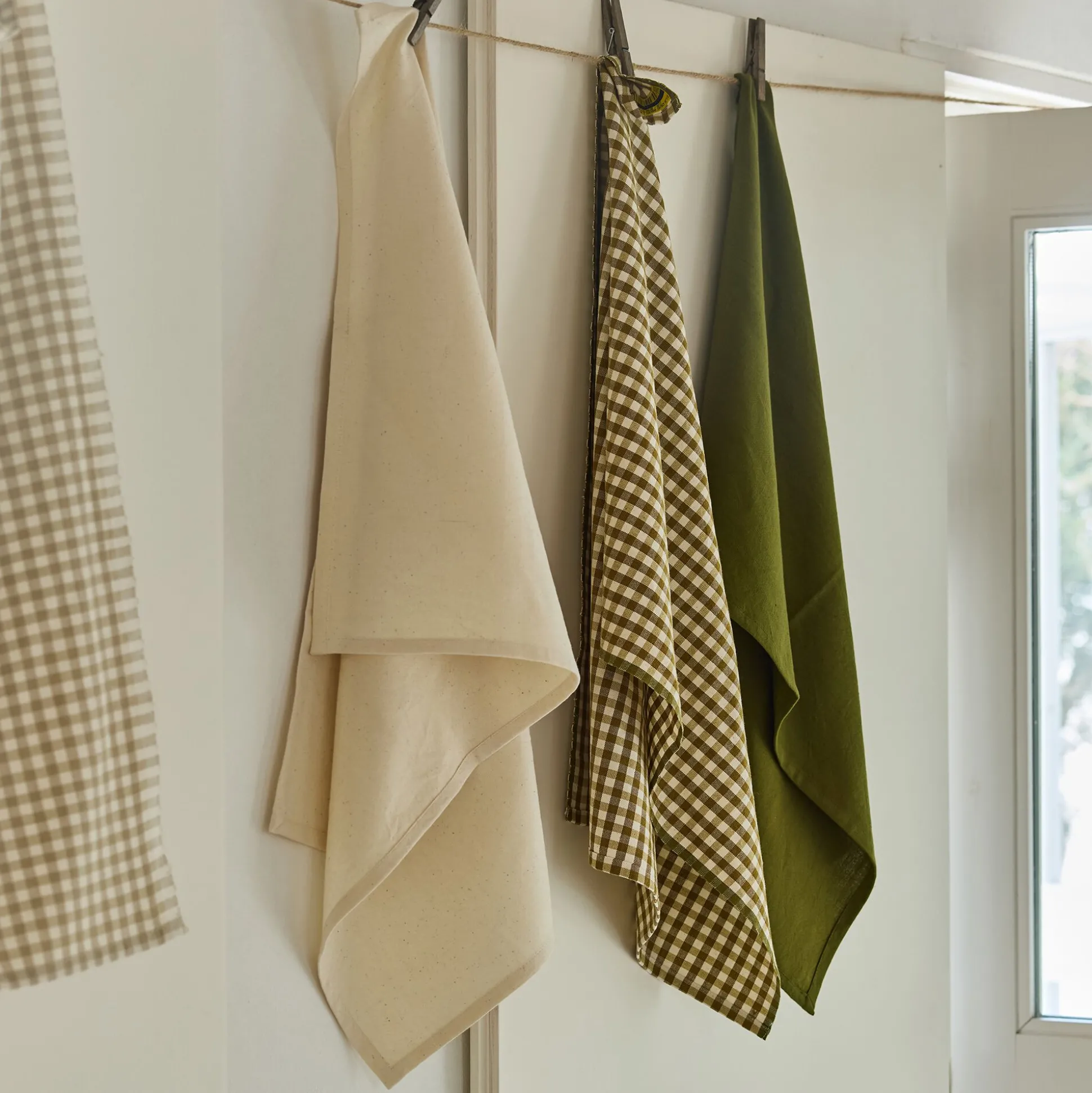 Ce lot de 3 torchons en coton allie praticité et élégance naturelle. Composé de deux modèles unis – l’un beige, l’autre vert mousse – et d’un torchon à carreaux mêlant ces deux teintes, il apporte une touche de douceur à la cuisine. Confectionnés en coton certifié Oeko-Tex, ces torchons sont à la fois absorbants et résistants, parfaits pour un usage quotidien. Leur format de 50×70 cm permet d’essuyer efficacement la vaisselle et les mains, tandis qu’une petite languette facilite leur suspension.
