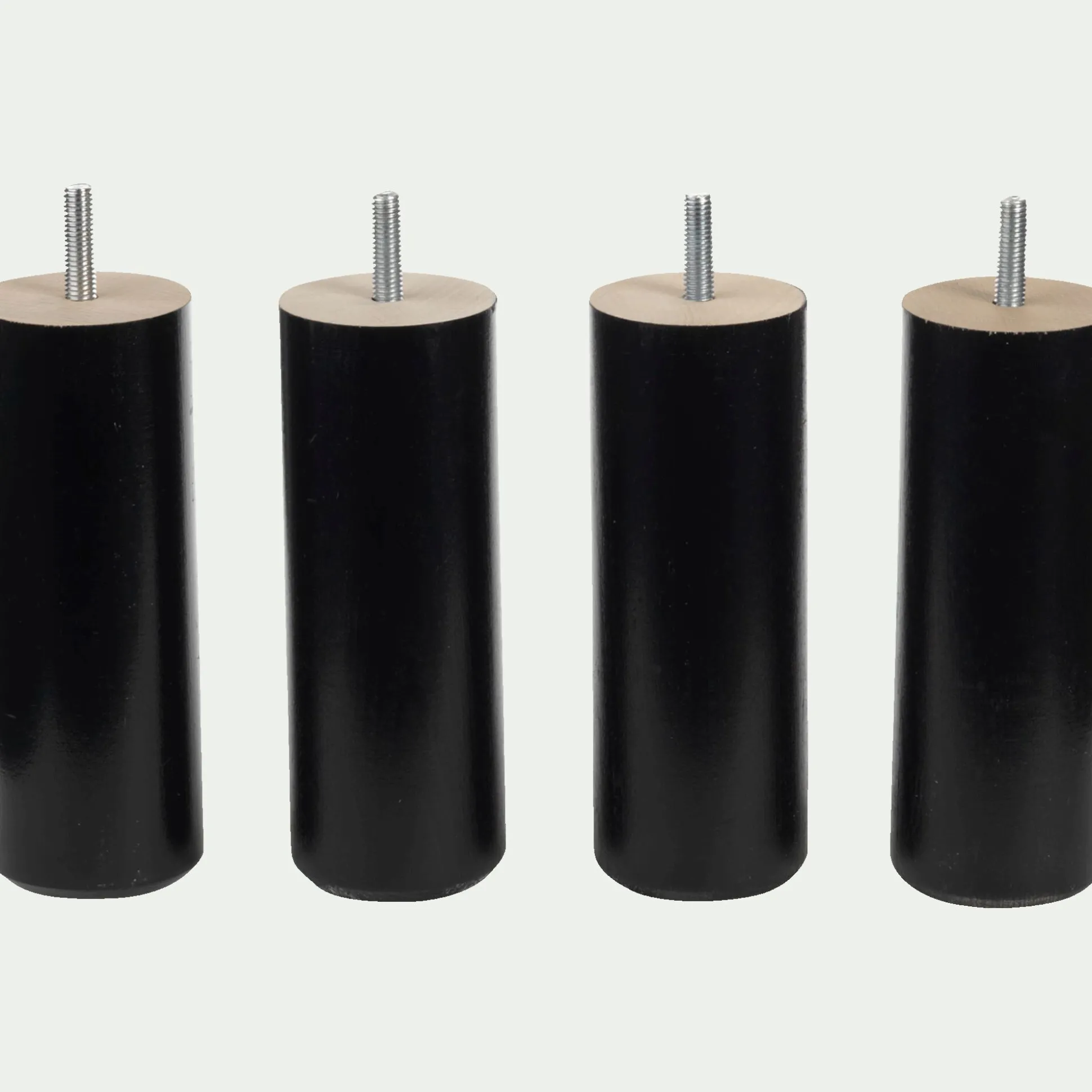 Un lot de 4 pieds de lit cylindriques en hêtre massif avec un joli coloris noir et qui s’adaptent sur tous les sommiers tapissiers.