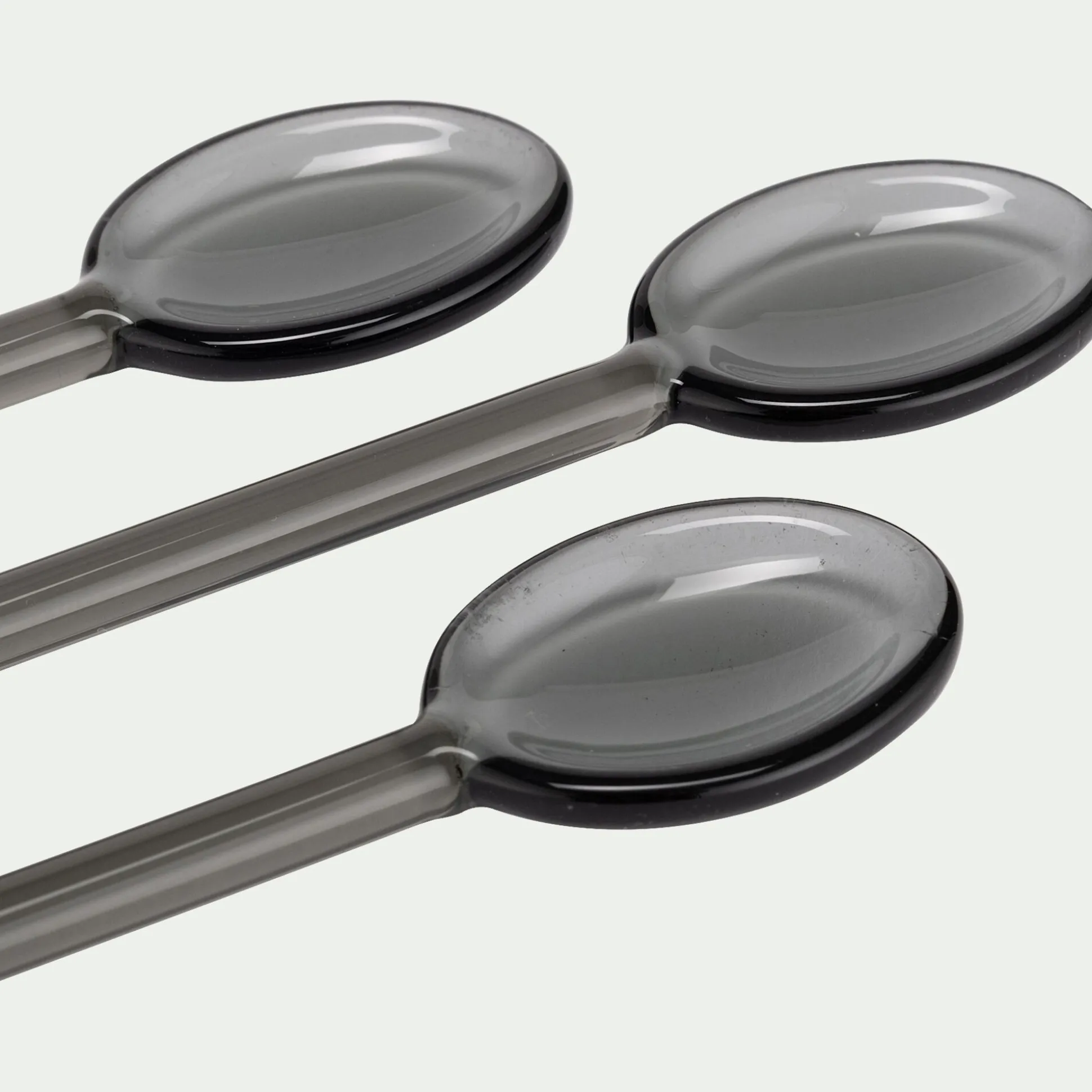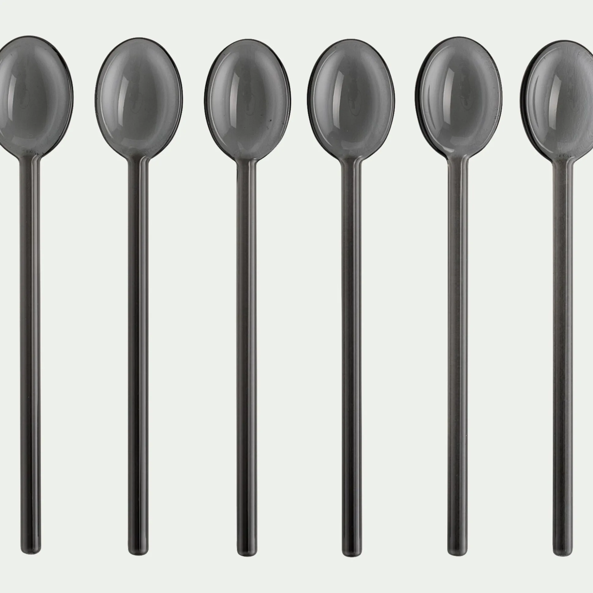 Ce lot de 6 cuillères à café allie finesse et originalité. Confectionnées en verre noir, elles se distinguent par leur silhouette élancée et leur long manche, idéal pour atteindre le fond des grands verres. Parfaites pour mélanger un latte ou savourer un dessert, ces petites cuillères apportent une touche élégante à la pause café.