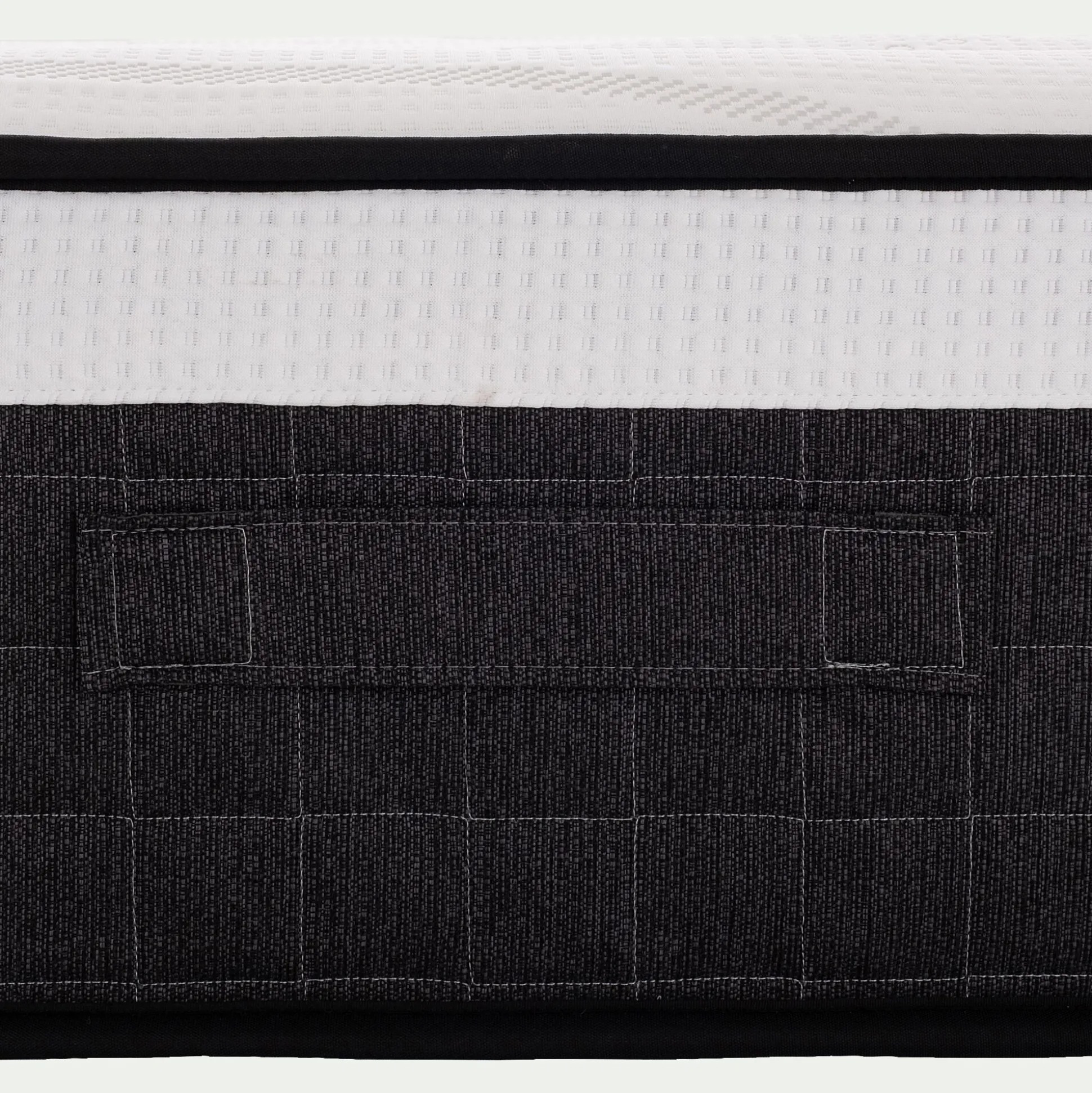 Âme : 716 ressorts ensachés en 140x200cm (70% recyclés, 30% non recyclés), ouate 100% polyester 300gr/m2 (70% recyclée, 30% non recyclée) et mousse viscoélastique 45kg/m3 12mm.