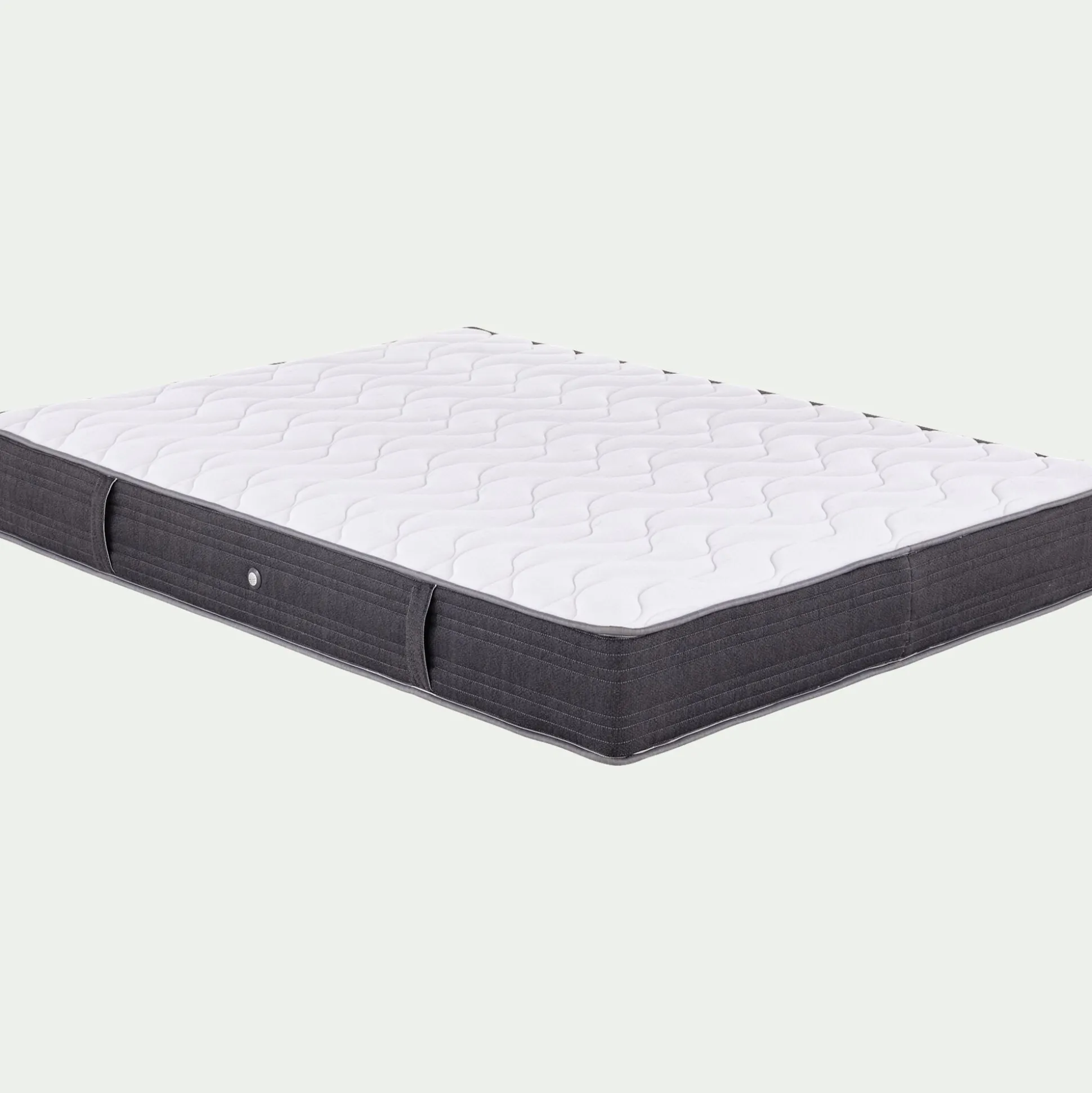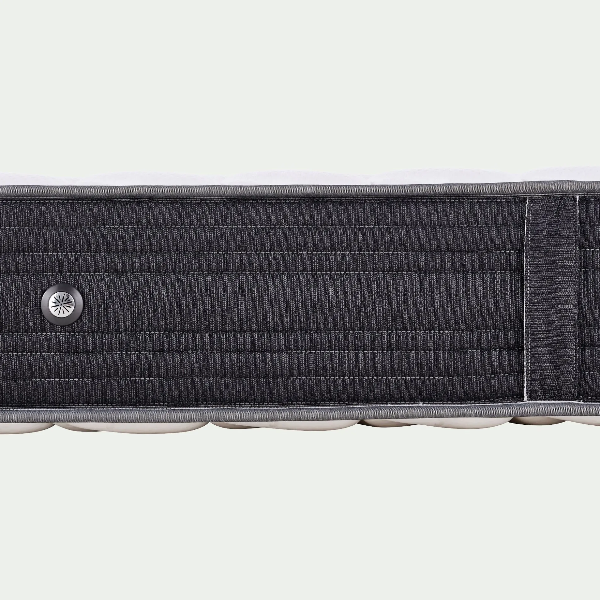 Ame : 616 ressorts ensachés renforcés Périplus hauts de 18cm en 140x200cm, sans carénage mousse, suspension garnie de complexe thermolié sur les 2 faces.