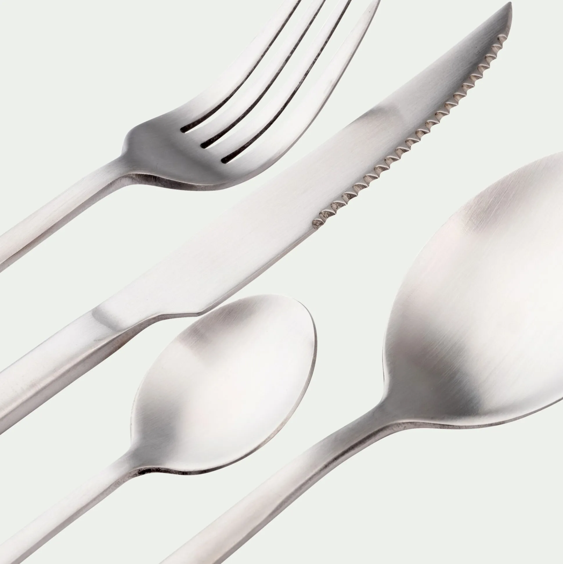 Design fluide et raffiné pour cette belle ménagère de 16 pièces en inox qui opte pour une finition satinée qui se patine avec le temps. Ses lignes pures et équilibrées apportent une touche d’élégance à votre table et son style lui permettra de s’accorder avec votre vaisselle.