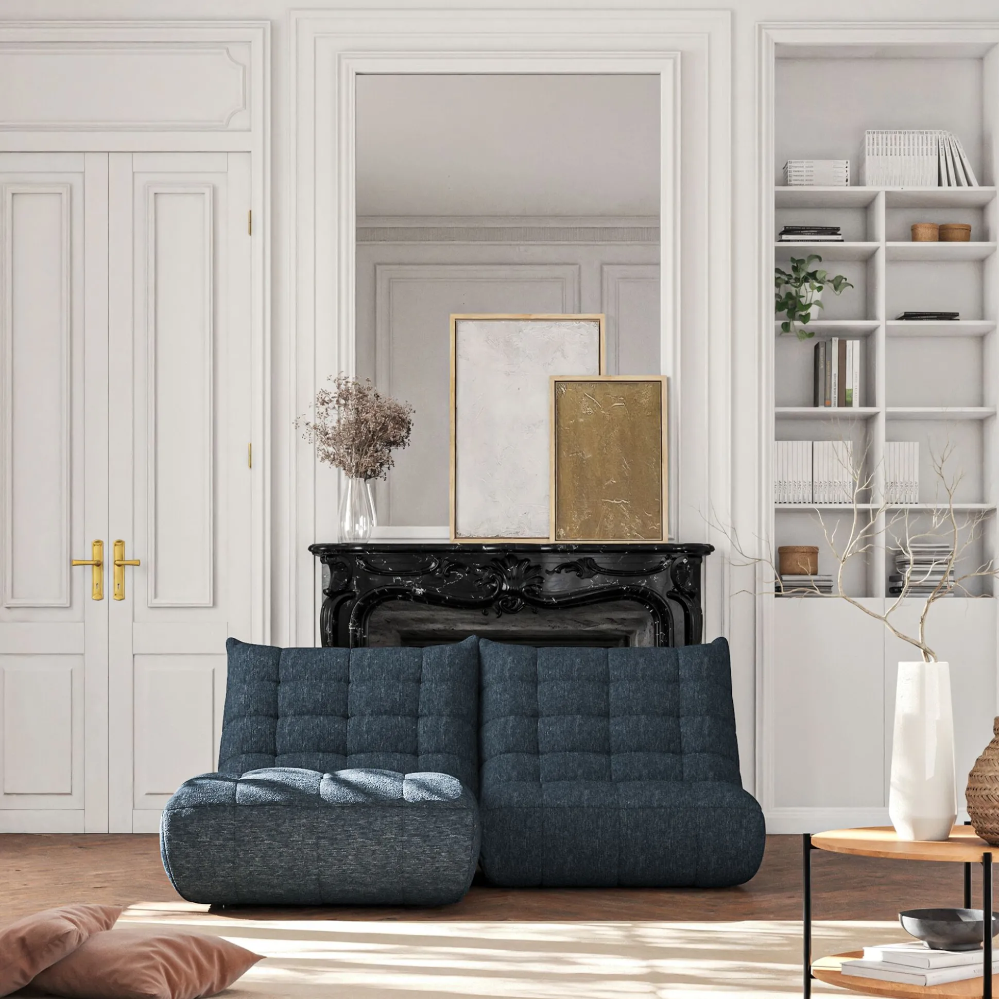 Cette méridienne à tout pour plaire. Sa forme aux rondeurs généreuses apporte une ambiance chaleureuse et un confort douillet. Son esthétisme donnera un style tendance à votre salon d’intérieur. Par sa couleur bleu marine, il pourra se marier à tous les styles de décoration. Fabriqué par des mains expertes du métier, cet élément est intégralement conçu en Europe. Parce qu’alinea a à coeur de vous satisfaire, cette gamme propose un large choix d’éléments, rendant celle-ci modulable à souhait. Vous pourrez ainsi mixer les tissus, les formes et les couleurs à votre guise et vous permettra de faire varier et faire vivre votre salon à votre image.