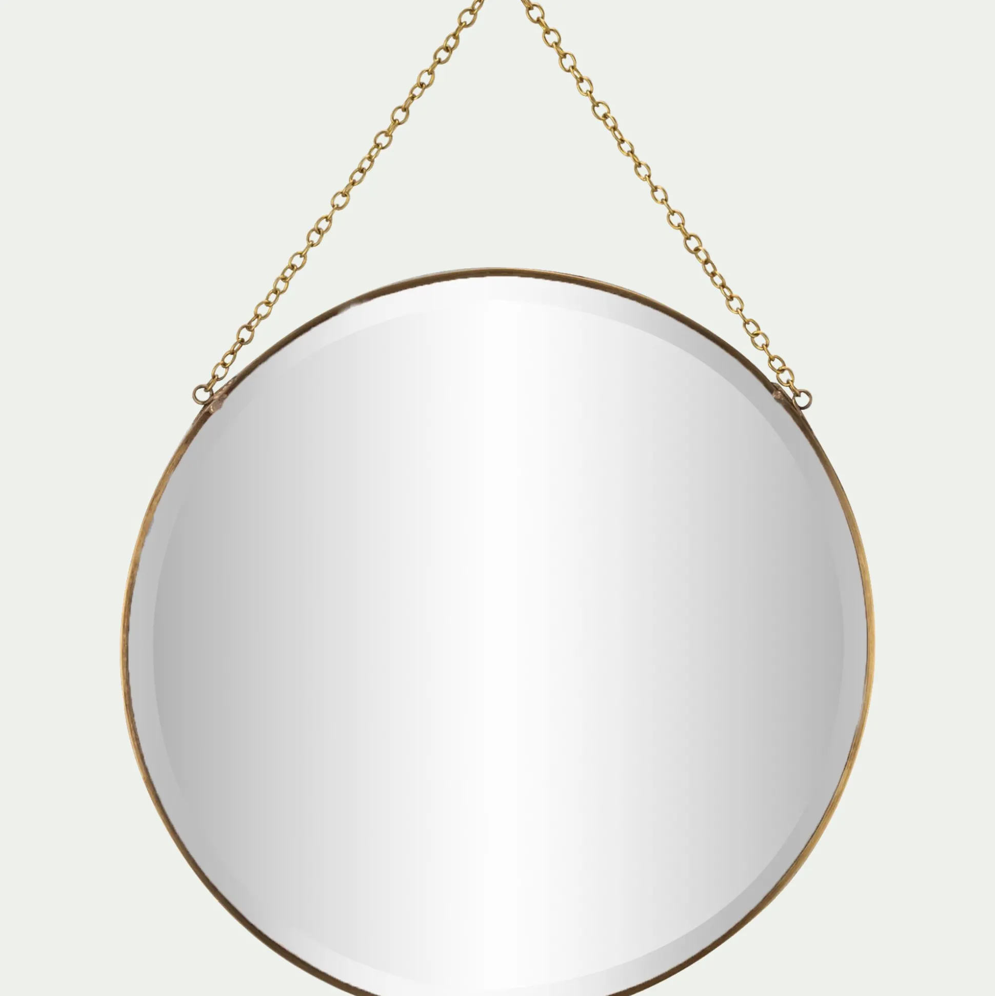 Le miroir Emy joue la carte du raffinement avec son cadre en laiton doré. Son format rond de 30,5 cm de diamètre et sa chaînette en métal lui donnent une allure vintage chic. Facile à suspendre, il capte la lumière et habille le mur d’une touche précieuse, que ce soit dans une entrée, une salle de bain ou au-dessus d’une coiffeuse. Un petit bijou déco à accrocher partout.
