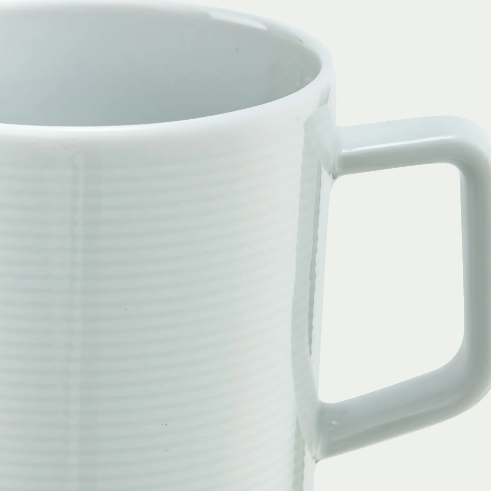 Elio est un mug pensé pour le petit-déjeuner. De 40 cl, il est parfait pour déguster un thé, un café ou un chocolat chaud. Épuré, ce mug en porcelaine arbore une silhouette classique, soulignée par une anse carrée et un motif en spirale. Simple et élégante, cette grande tasse est de qualité hôtelière.