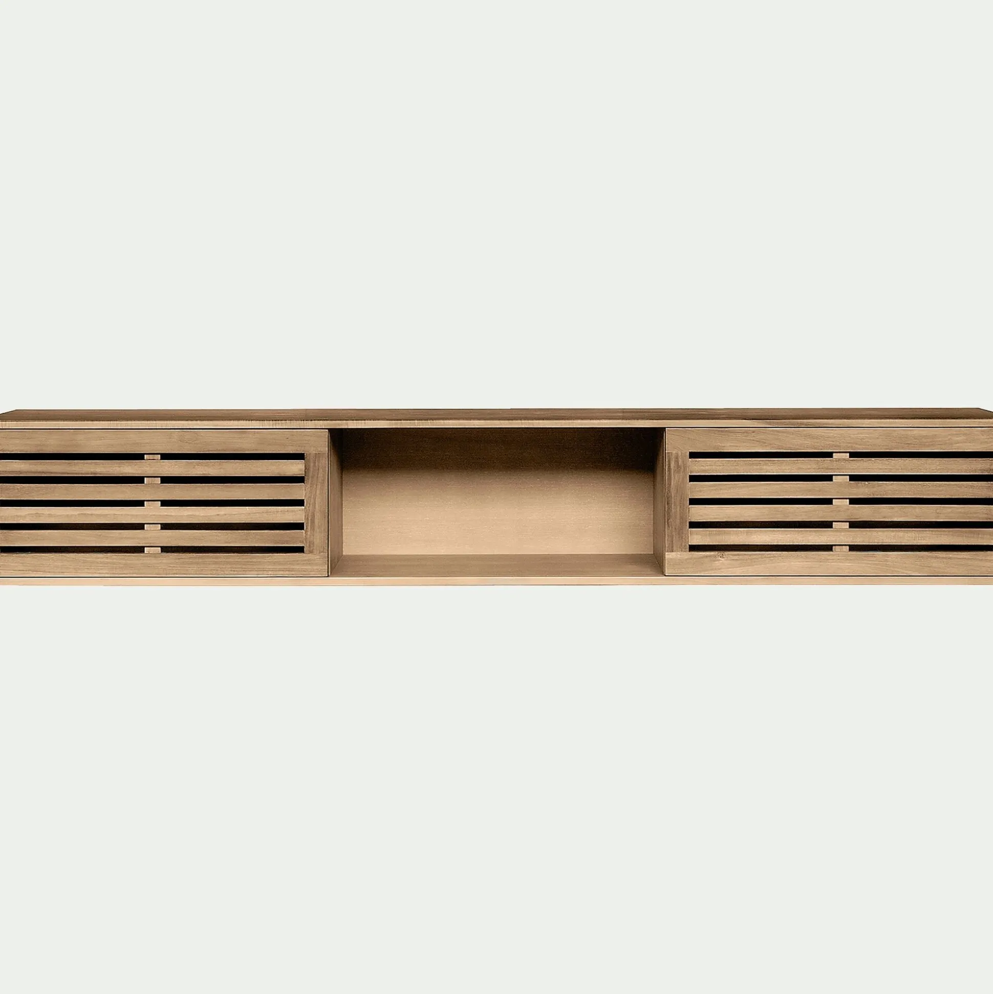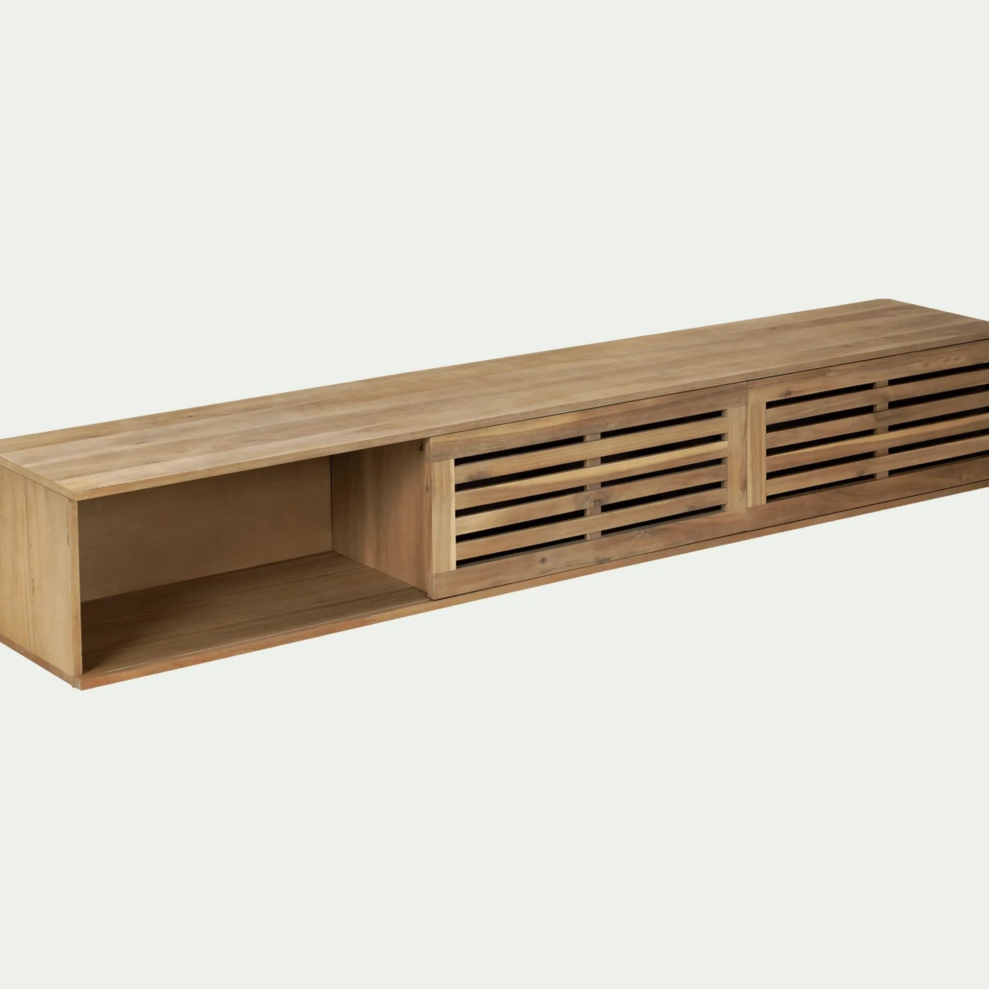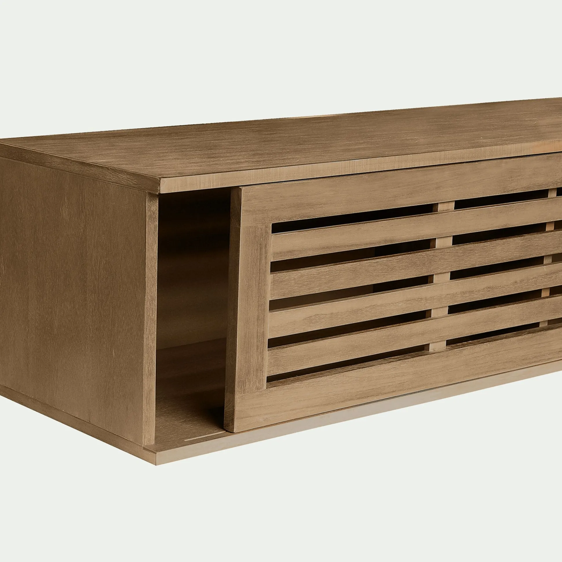 Portes en acacia massif. Dessus, fond, séparations et panneaux de côtés en panneaux de fibres de moyenne densité placage. Fond en contreplaqué. Finition nitro-cellulosique