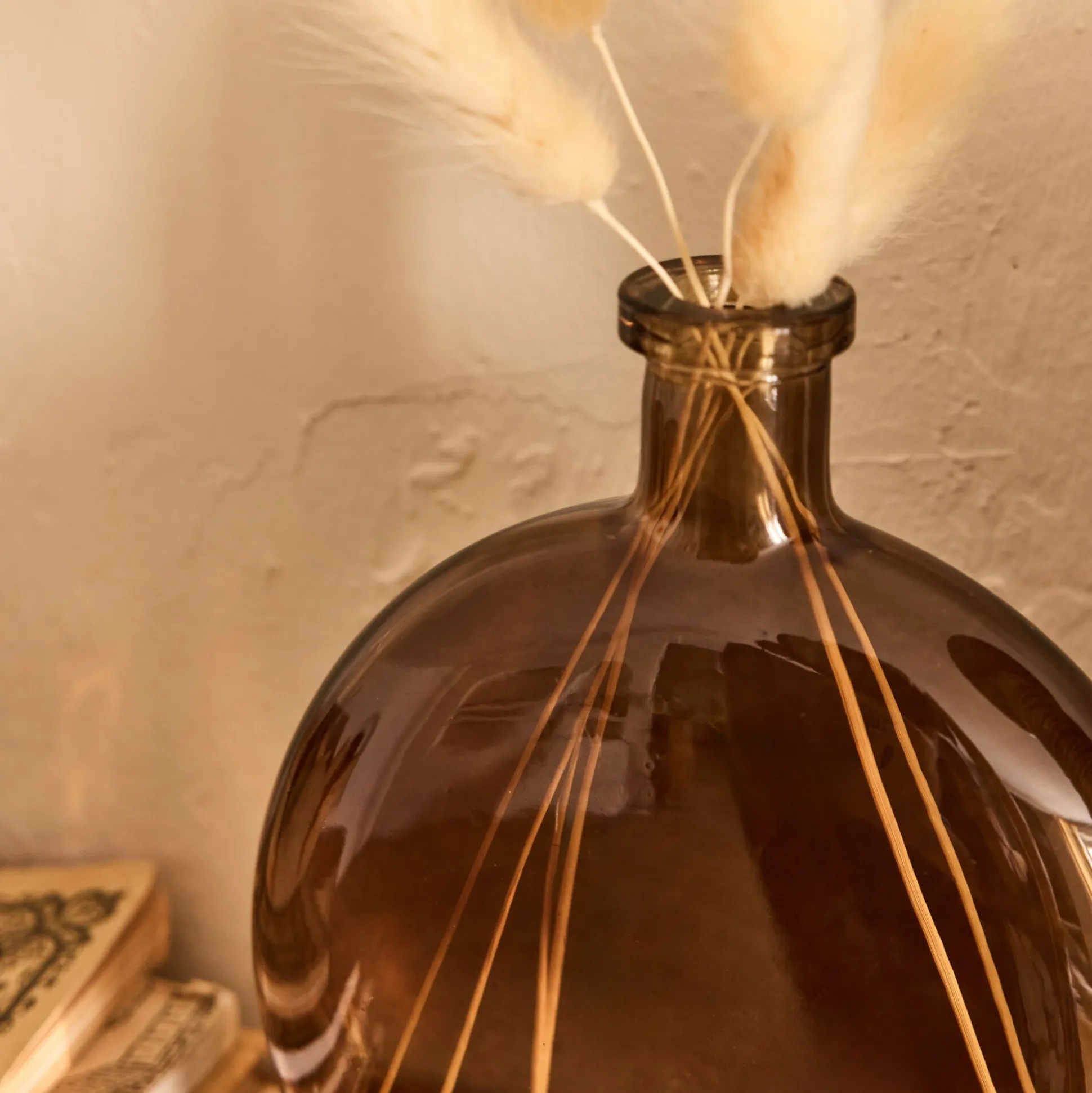 Ajoutez une touche d’originalité à votre intérieur avec ce petit vase en verre teinté. Sa forme arrondie et son goulot étroit en font un objet à la fois décoratif et pratique, idéal pour accueillir une branche unique ou une fleur. La couleur ambrée du verre mettra en valeur les matières naturelles ou séchées. Posé sur une console, un meuble bas ou une étagère, il s’intègrera dans tous les styles d’intérieur.