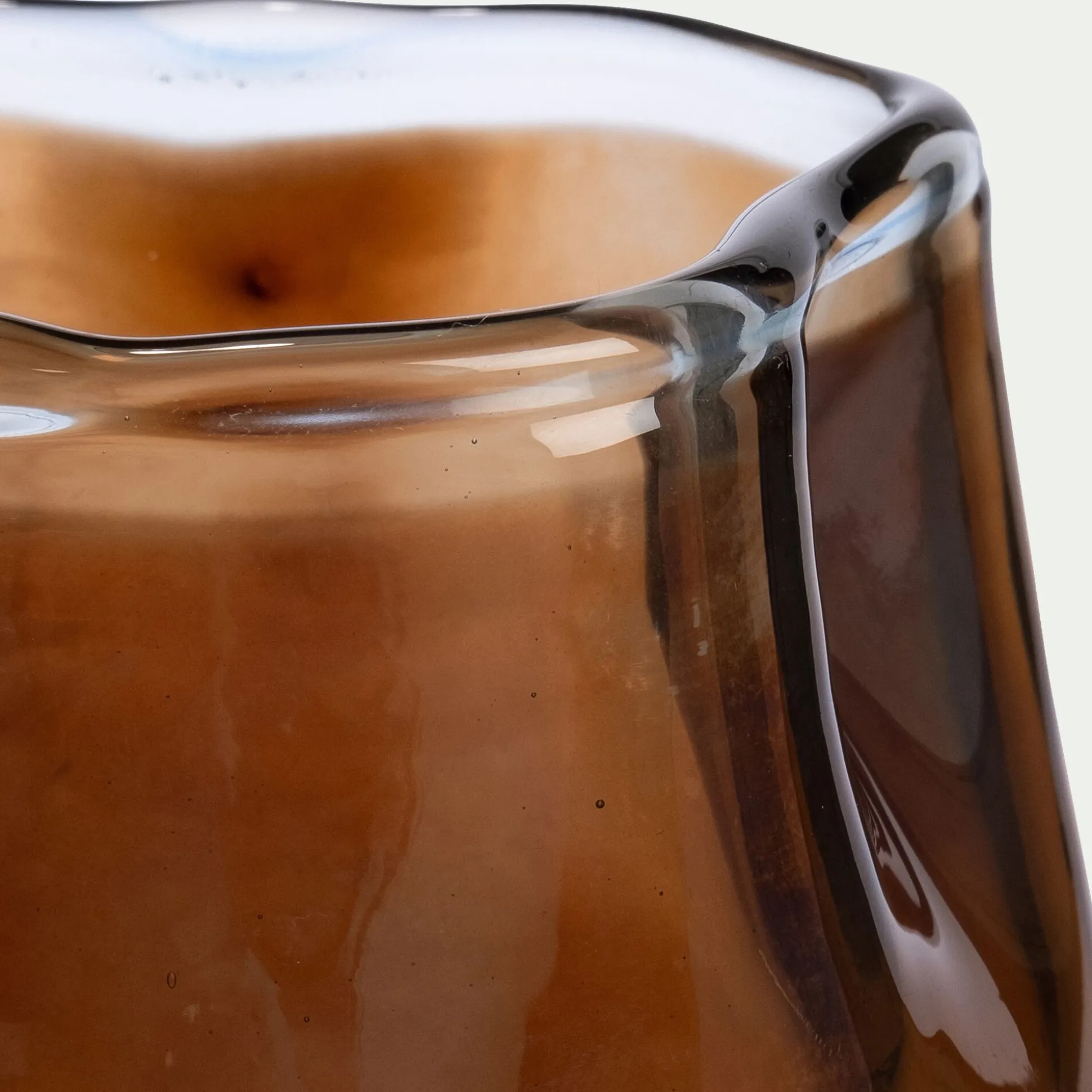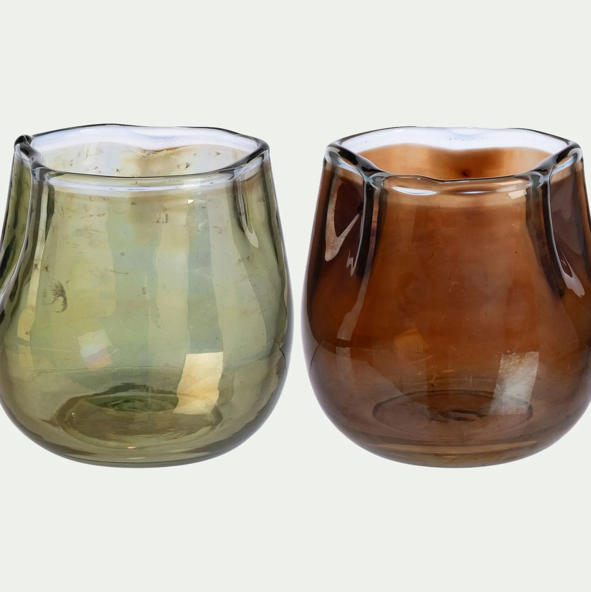 Illuminez vos soirées de fête. Ce photophore en verre teinté offre une forme moderne et une couleur profonde (verte ou ambrée, modèle aléatoire). Il diffuse magnifiquement la lumière de la bougie pour créer une ambiance chaleureuse et tamisée sur votre table. Le verre de qualité apporte un fini lisse et une touche de couleur sophistiquée à votre décoration de Noël.