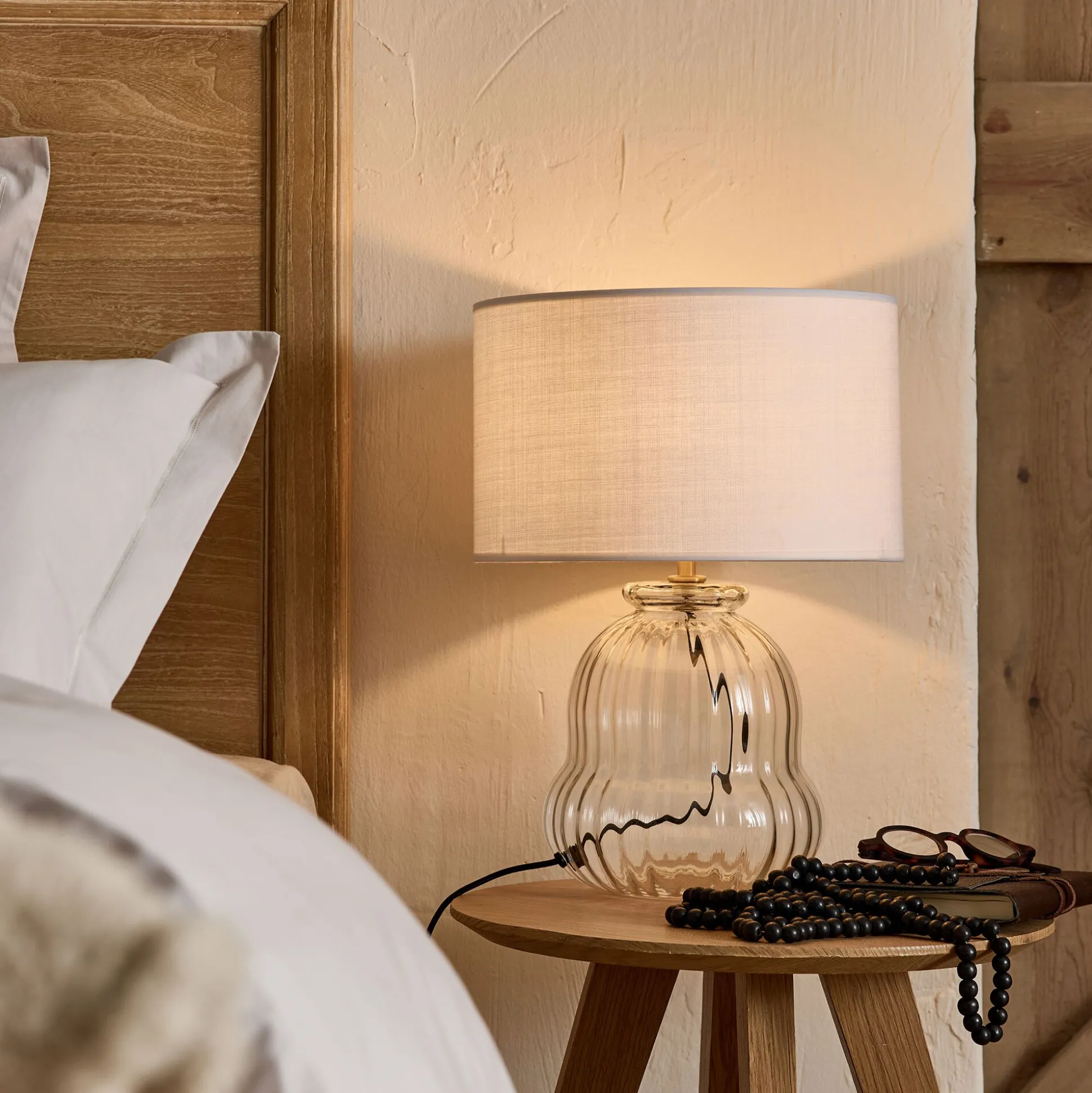 Ce pied de lampe électrifié en verre transparent se distingue par son design élégant et organique. Sans abat-jour, il laisse libre cours à la créativité pour le compléter selon vos envies et créer un luminaire unique et personnalisé. Le verre subtilement strié ajoute une touche de texture et de relief, captant la lumière pour accentuer ses reflets.