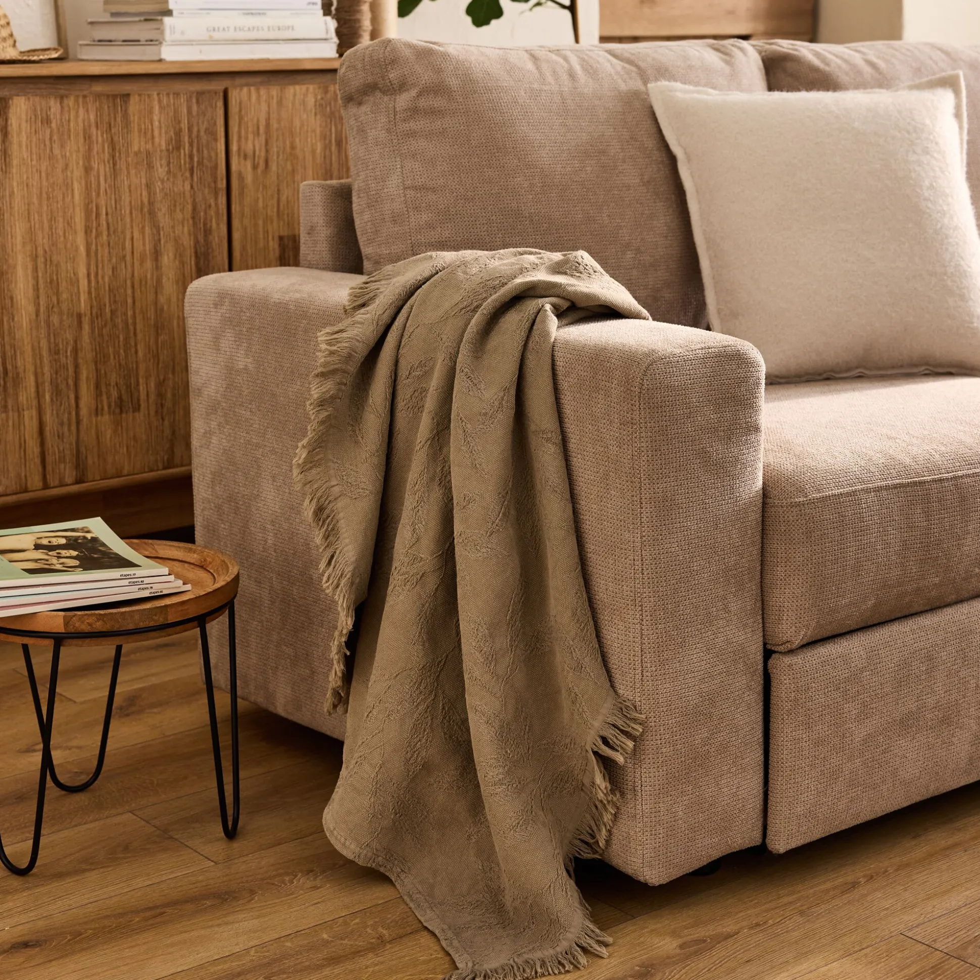 Alloro est un plaid idéal pour vous couvrir tout en apportant une touche esthétique à votre pièce. Léger, il vous permet de vous lover lors de soirées estivales. En 130×170 cm, il donne une touche naturelle et vivante à la chambre ou au salon grâce à son délicat motif végétal. Des feuilles en relief ornent le tissu vert pour un ton sur ton distingué, insufflant fraîcheur et couleur à votre déco. Confectionnée en coton certifié Oeko-Tex, ce plaid en tissu jacquard offre douceur et confort pour des poses en toute détente.