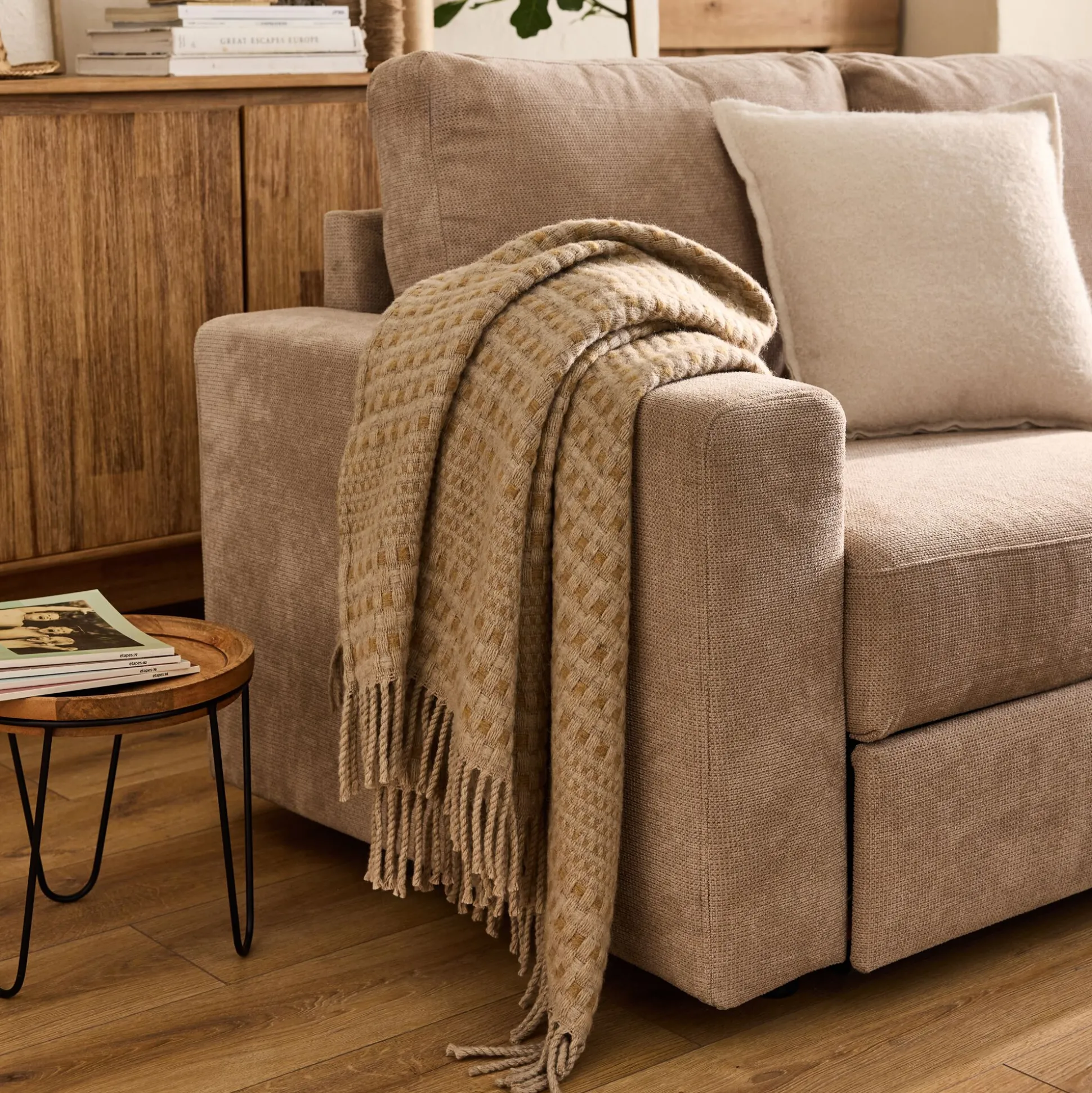 Choisissez du linge de maison responsable pour votre intérieur. Ce plaid chaud est parfait pour vous couvrir tout en donnant une touche design à votre maison. Mais il est aussi idéal, car il est composé à moitié de laine recyclée. Tissé dans un tissu marron laissant apparaître un motif à carreaux, il est le parfait mariage entre modernité et tradition. En 130×170 cm il sera parfait pour disposer sur votre canapé ou dans votre chambre. Sa finition frange lui apporte un côté cocooning qui vous donnera envie de l’utiliser lors des plus froides soirées.
