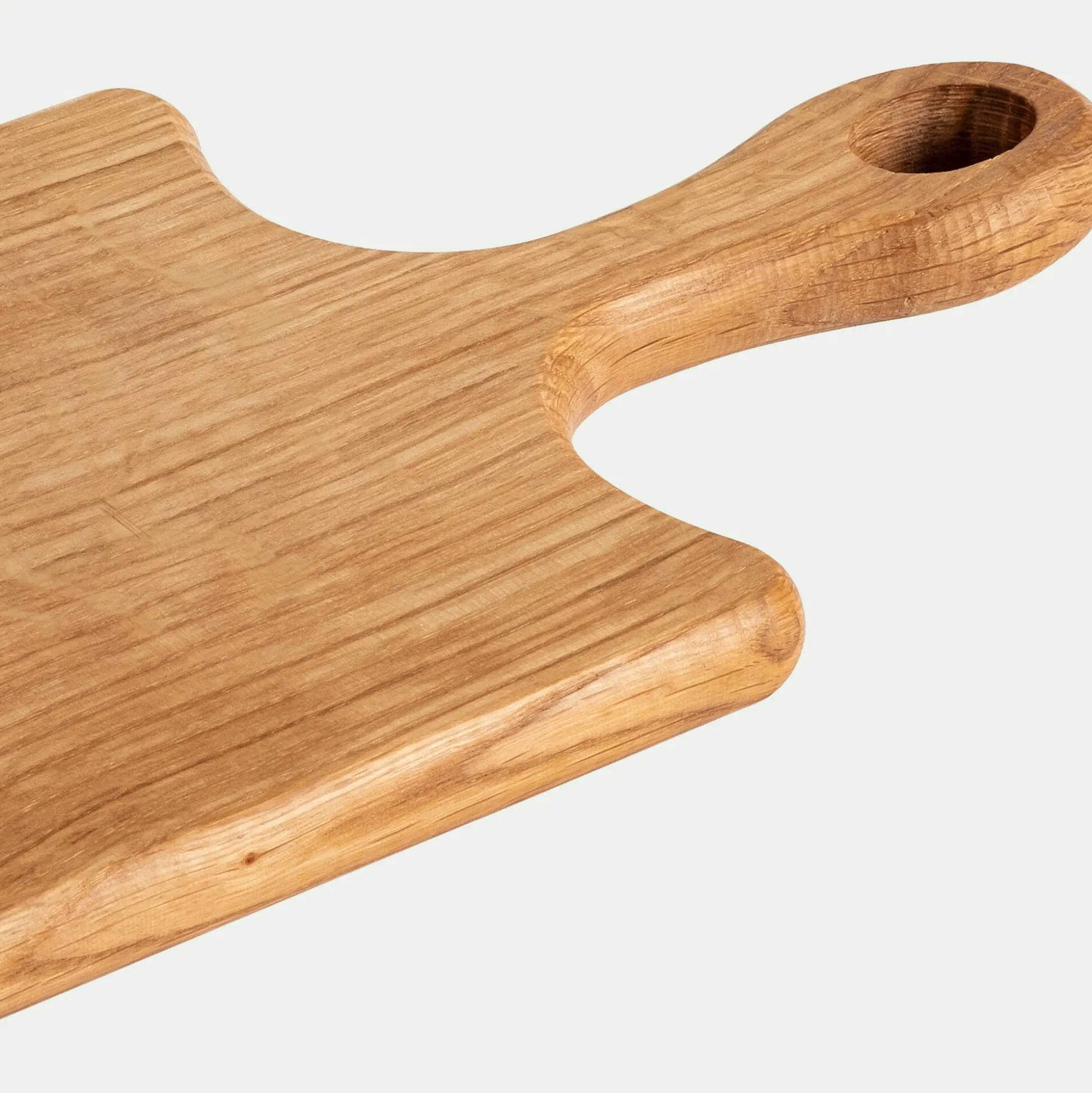 Cette planche à pain en chêne est idéale pour découper votre pain et le présenter à table. Découpez tous types de pain et disposez les tranches sur cette planche de 61,59 x 15 cm. Son matériau lui permet d’être résistante aux chocs et d’avoir une longue durée de vie afin de pouvoir l’utiliser pendant de longues années. Cette planche pourra donc vous accompagner lors de nombreux repas, vous n’aurez qu’à la déplacer à l’aide de ses deux poignées et à la placer sur votre table lors de repas, d’apéritifs ou de petits-déjeuners. De plus, cette planche est élégante et apportera du style à votre table en lui donnant un côté naturel et authentique.