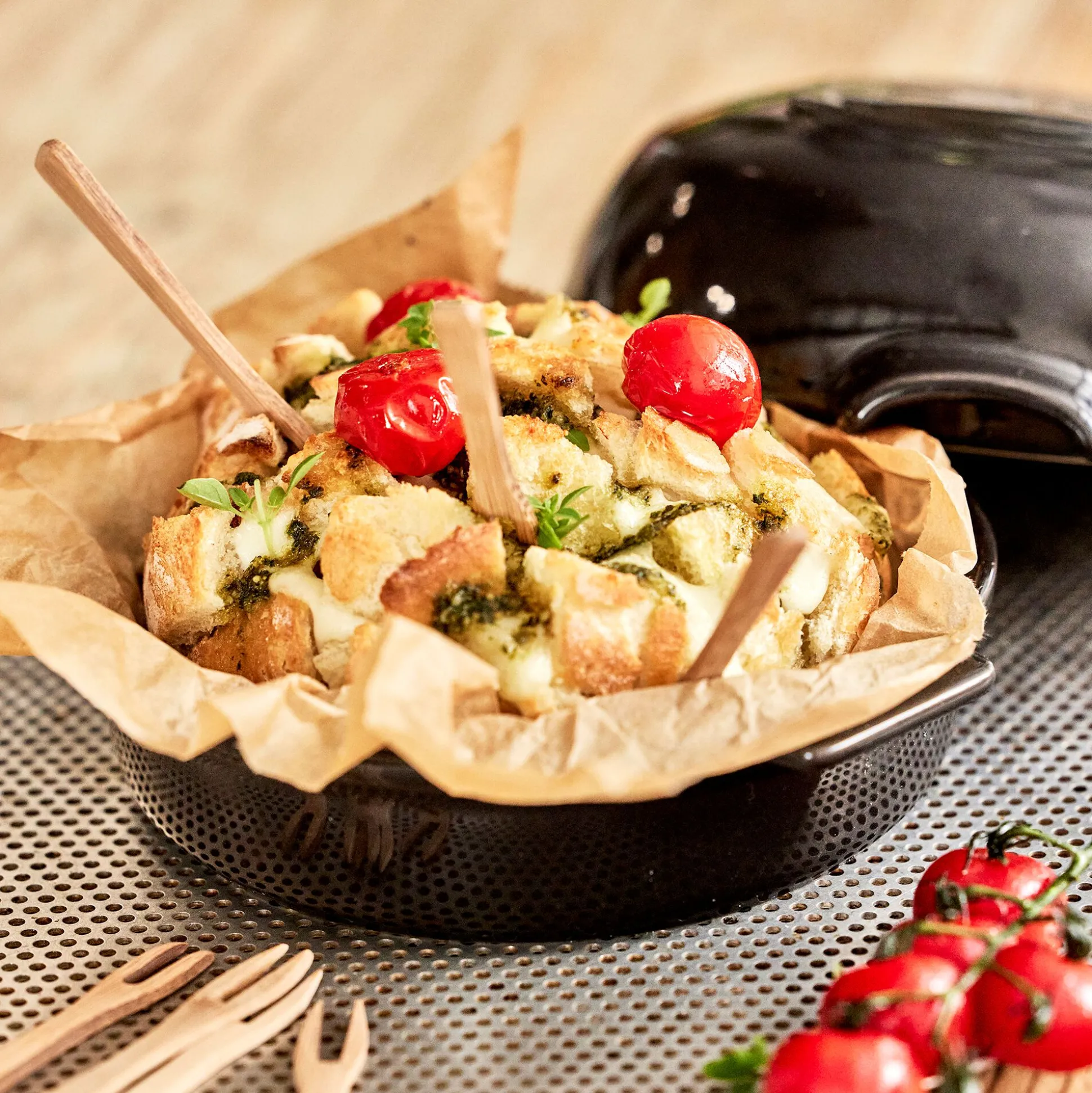 Découvrez ce plat à four pour concocter tous vos mets. Il se trouve que ce matériel de cuisson est aussi un incroyable accessoire culinaire conçu pour la cuisson au four de différents types de fromages tels que le brie, le camembert, la mozzarella, etc. Laissez libre cours à votre créativité en ajoutant des fruits tels que des pommes ou des poires, des herbes comme le thym ou les herbes de Provence, ou même en l’assaisonnant avec un délicieux vin blanc. Une fois sorti du four, savourez ce fromage lors d’un apéritif avec des petits crackers, en raclette avec des pommes de terre, ou tout simplement en l’accompagnant de viande et de légumes. Le cheese baker offre une multitude de façons de le préparer et de le déguster. Laissez libre cours à votre imagination et régalez-vous !