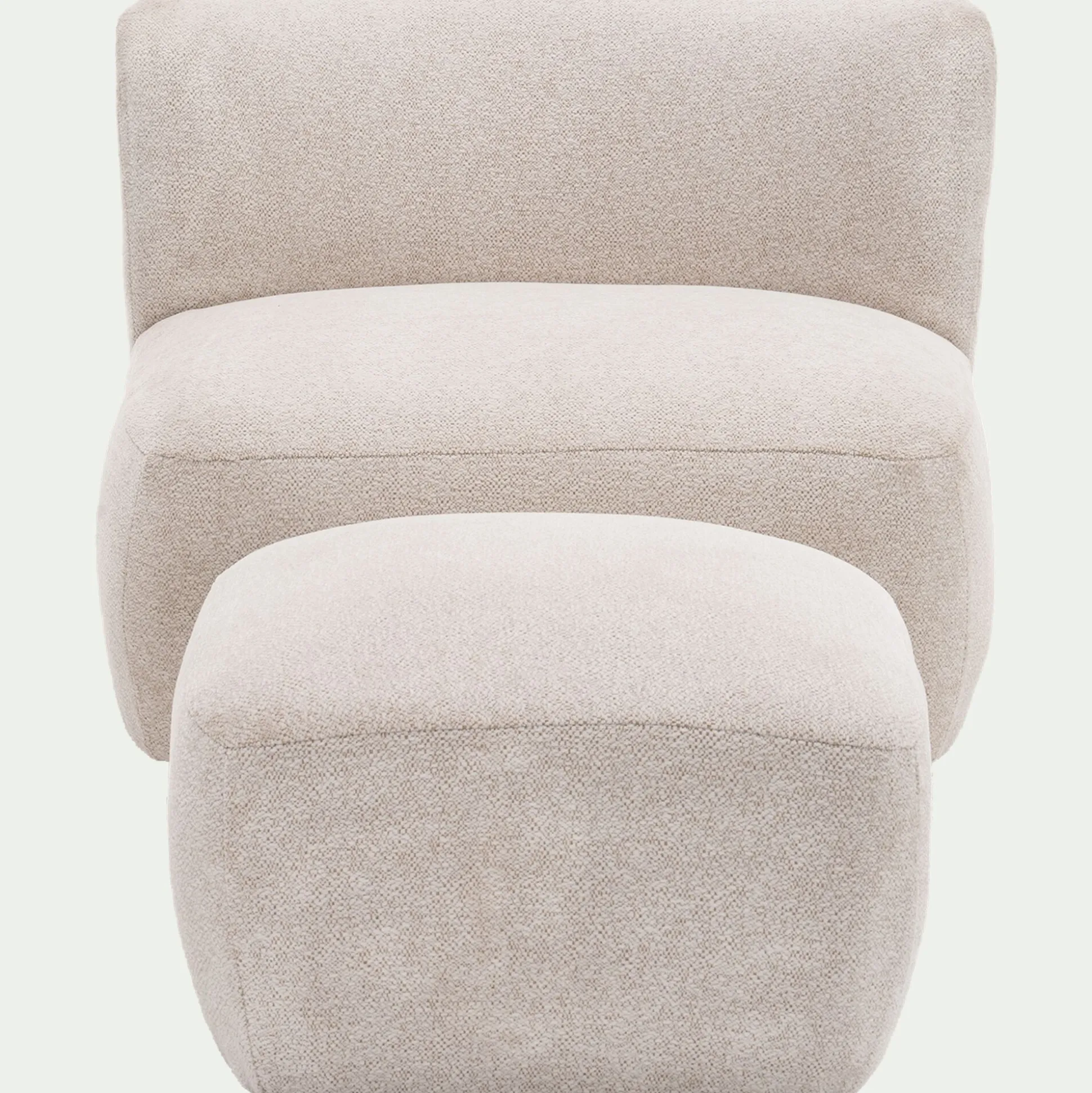 Le pouf Cotti séduit par son design rond et tout en douceur. Revêtu d’un tissu blanc écru, il s’intègre facilement dans tous les intérieurs. Polyvalent, il peut servir de repose-pieds, d’assise d’appoint ou encore de petit bout de canapé pour déposer un livre ou un plateau. À la fois pratique et décoratif, ce pouf en tissu apporte une note cosy et naturelle au salon.