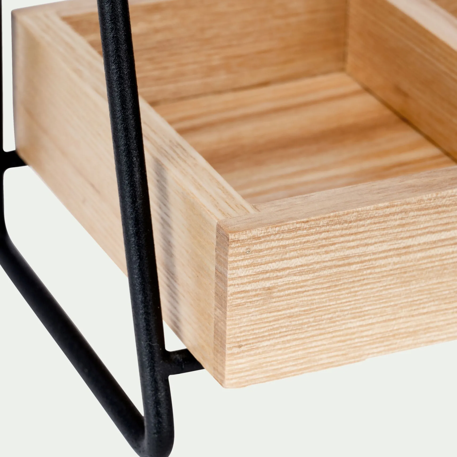 Un range couverts à 3 compartiments en bois et métal noir qui sera très pratique pour y ranger vos fourchettes, cuillères et couteaux. Une alliance de matières laissant émaner un esprit déco et authentique pour ce porte couverts que vous pourrez poser sur le plan de travail de la cuisine.