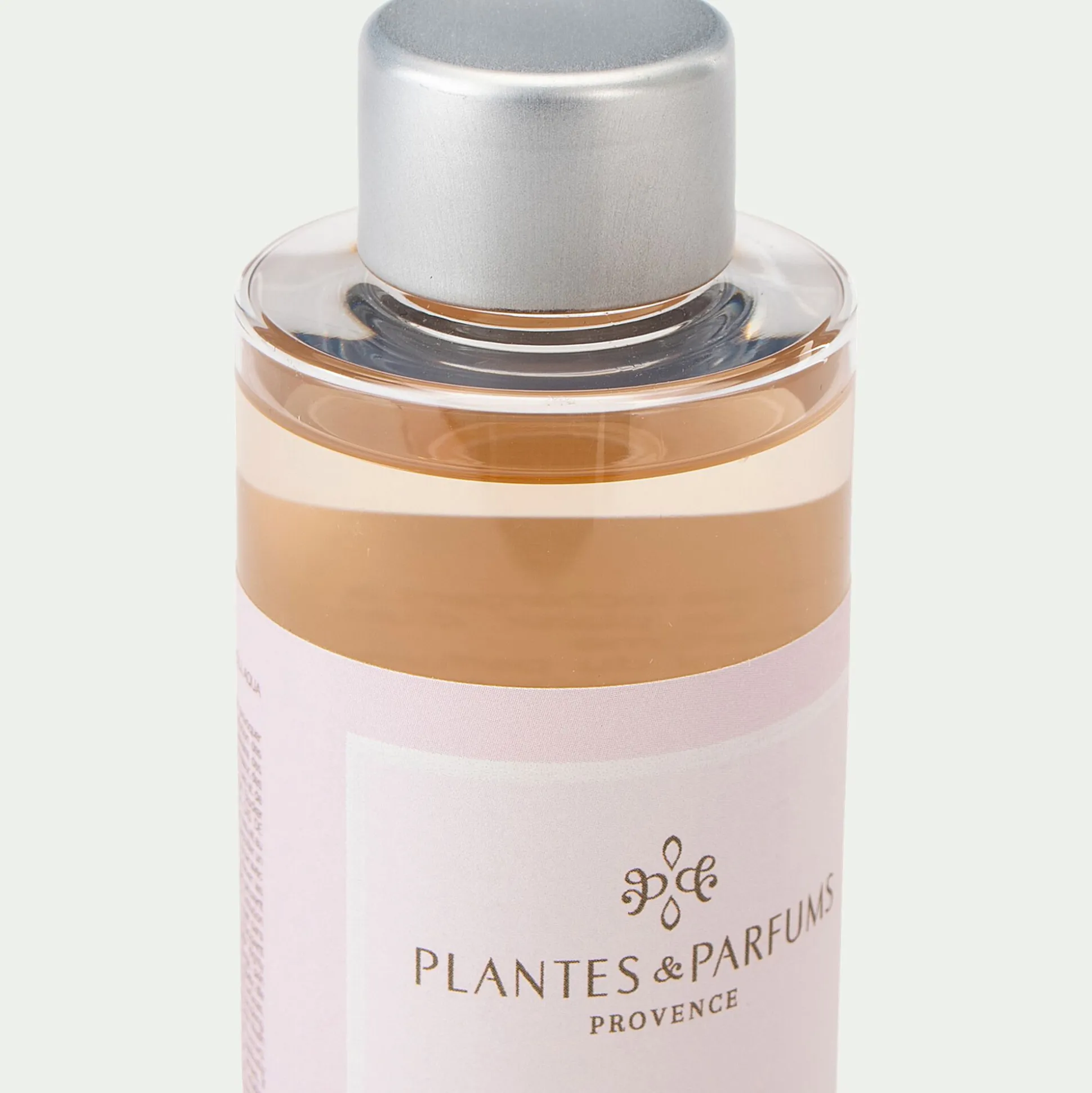 Un parfum d’intérieur à la délicieuse senteur venue d’ailleurs. Une fragrance d’allégresse aux notes de pêche et de citron associées à l’exotisme de l’hibiscus et de la grenade. Une sensation de bien être exceptionnelle qui s’invite dans toutes les pièces de la maison. Un parfum fabriqué en Provence, qui met à l’honneur l’excellence du savoir faire français.