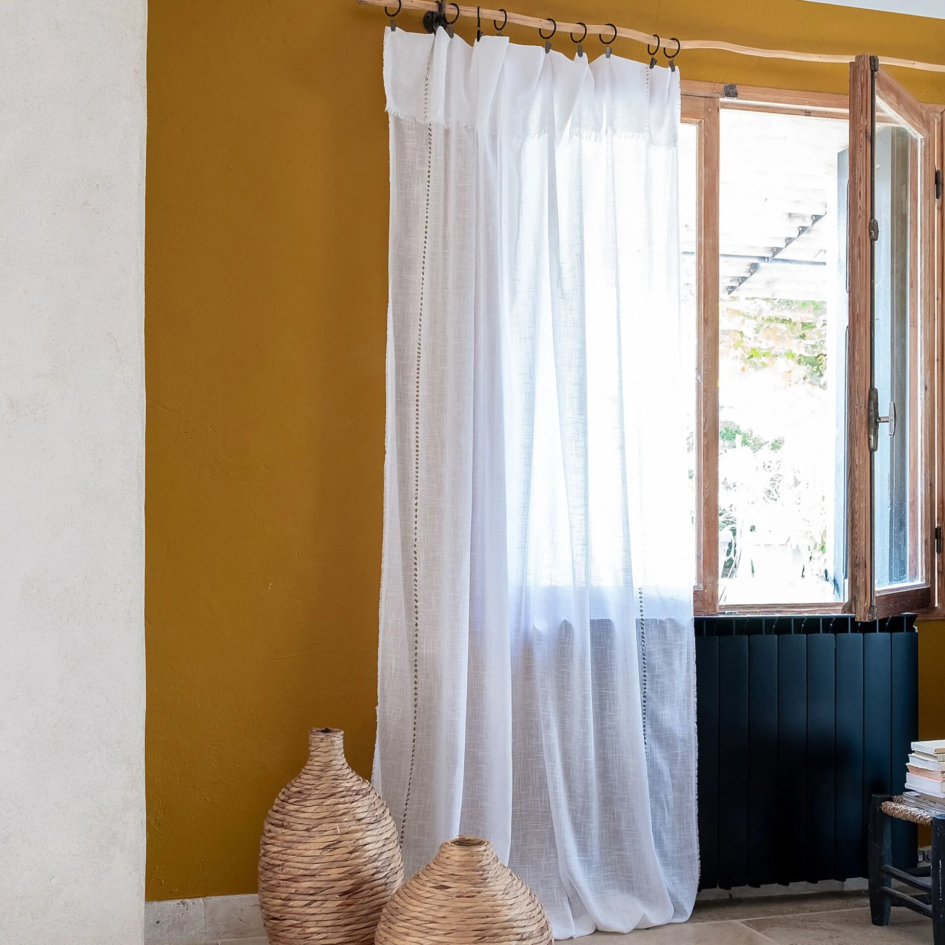 Rideau à anneaux pinces en coton finition ajouré 140x280cm – blanc