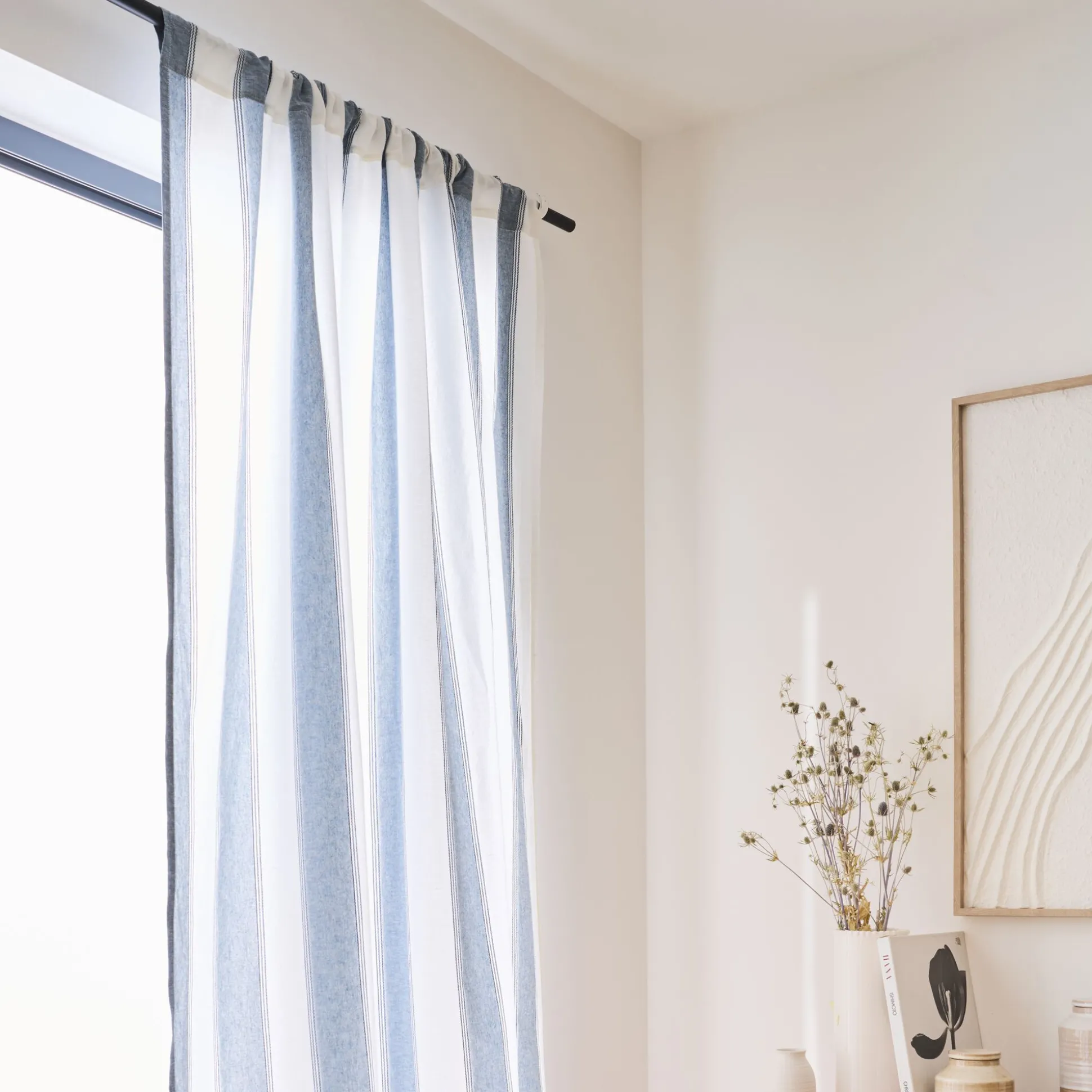 Inssufflez un vent design à votre maison en toute discrétion et délicatesse avec ces rideaux à rayures bleu et blanc. Ils sont le parfait accord entre élégance et durabilité. En lin et coton de haute qualité, ils sont travaillés avec soin au Portugal et représentent un savoir-faire européen. Ils vous permettront d’embellir votre maison avec charme et authenticité. Leurs matiériaux naturels et leur doux coloris créent une atmosphère lumineuse et apaisante dans votre intérieur. En 140×250 cm, leur doux tissu laisse passer la lumière tout en préservant votre intimité pour une ambiance tamisée. Idéaux pour habiller vos fenêtres avec subtilité, ils sublimeront une décoration naturelle ou moderne.