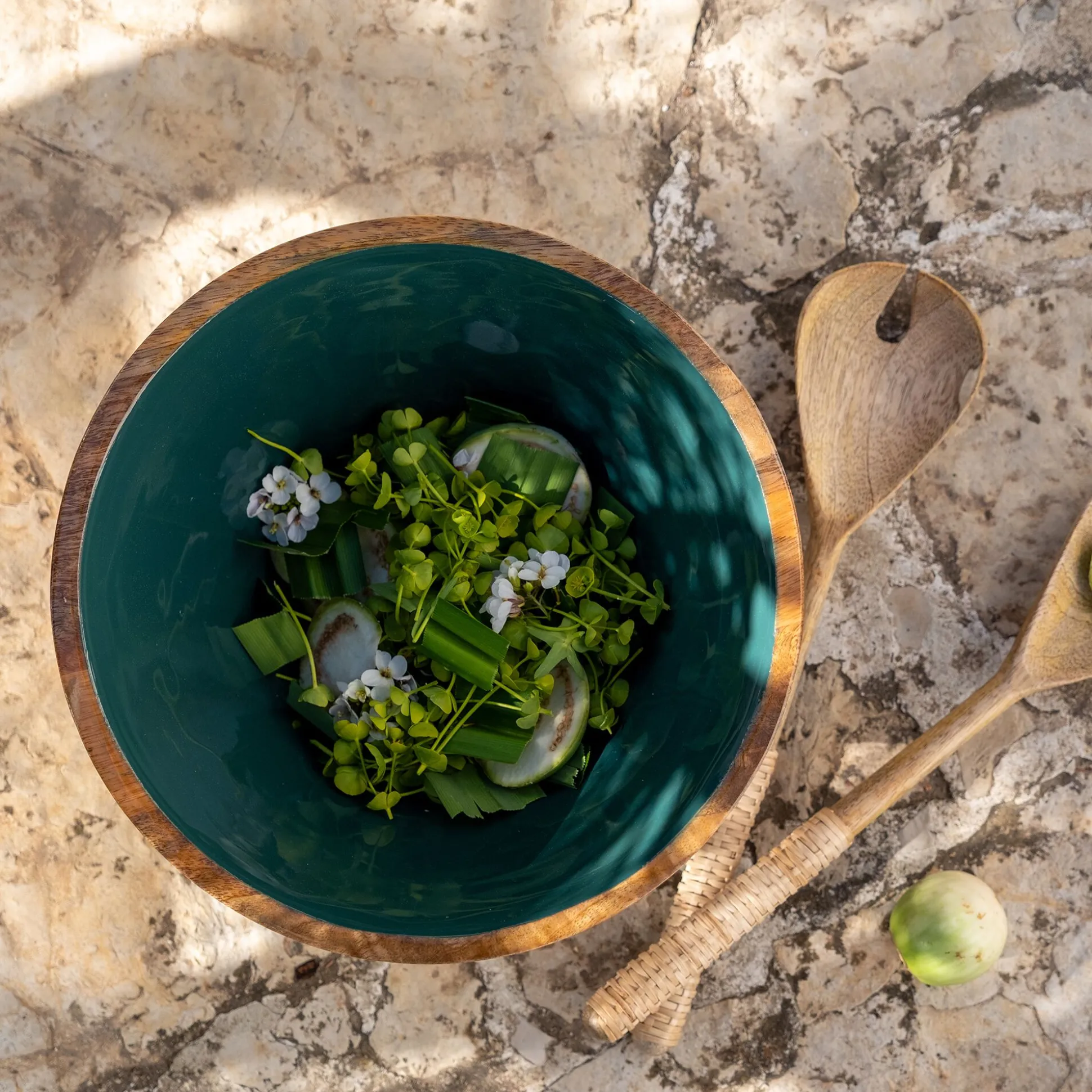 Ce saladier allie la chaleur du bois de manguier à l’intensité du bleu prusse. Sculpté dans une essence dense et texturée, il révèle à l’intérieur un émaillage profond et vibrant, qui crée un joli contraste avec l’extérieur resté brut. Petit mais profond, il est idéal pour servir salades composées ou fruits de saison. Ce saladier est aussi un bel objet déco à laisser sur la table. Une pièce pleine de caractère, entre authenticité et éclat de couleur.