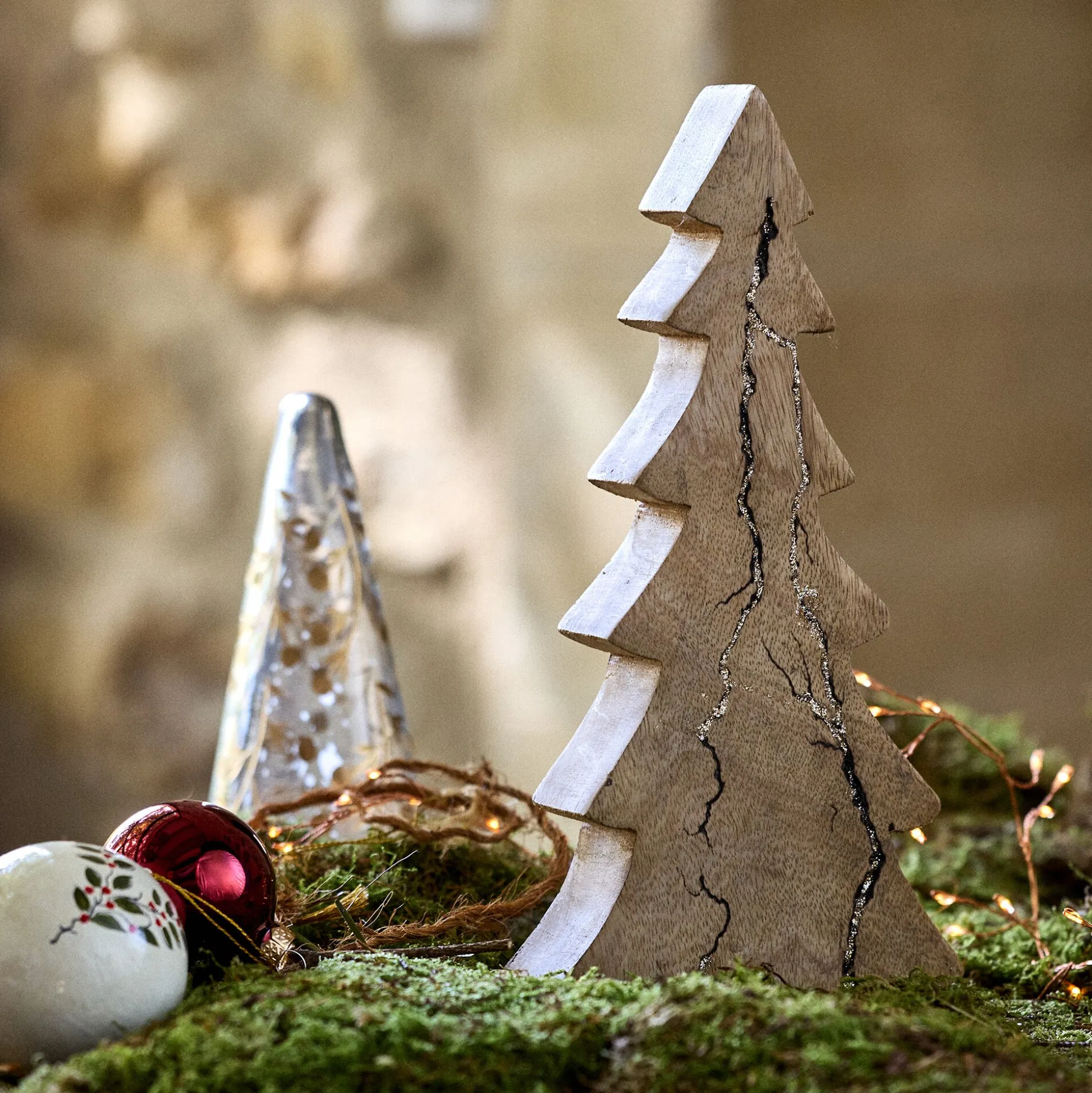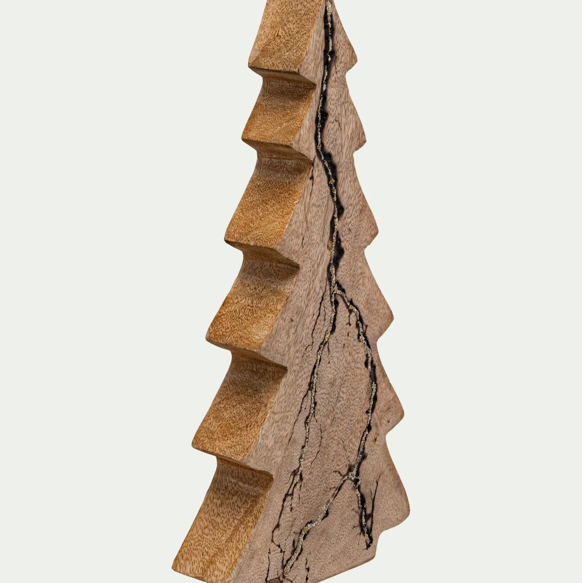 Un joli sapin déco en bois de manguier pour décorer votre table de Noël. Un style épuré qui, avec des paillettes dorées, apporte une touche chic et festive à votre décoration. Disposez-le au milieu de votre table ou sur un buffet, entouré d’une guirlande pour le mettre en valeur et harmonisez votre décoration de Noël en l’associant à des tons dorés et argentés. Ce sapin décoratif haut de 29 cm est parfait pour une touche distinguée et cocooning dans votre salon en toutes saisons. Cet accessoire tendance fera entrer la magie de Noël dans votre intérieur et émerveillera tous vos invités.