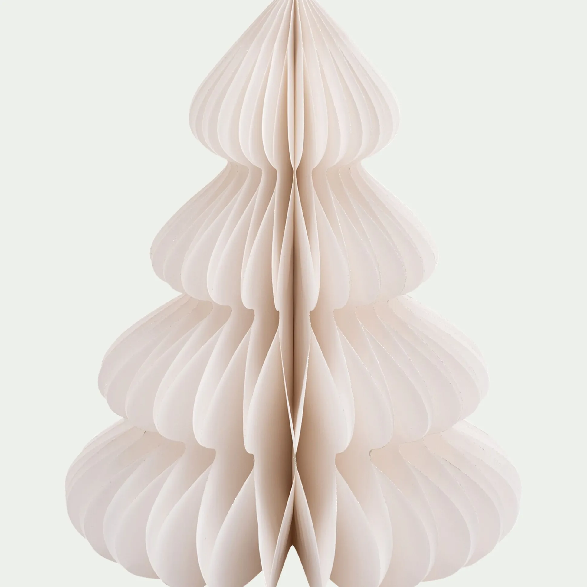 Ce petit sapin en papier blanc s’inspire de l’art délicat de l’origami pour créer une décoration de Noël à poser pleine de poésie. Il se déplie en accordéon pour révéler son volume et se maintient en place grâce à un système d’aimant. Léger, épuré et raffiné, ce sapin à poser trouve naturellement sa place au centre de la table, sur une commode ou un rebord de fenêtre. Une pièce décorative simple et magique, comme un clin d’œil à un Noël tout blanc et féerique.
