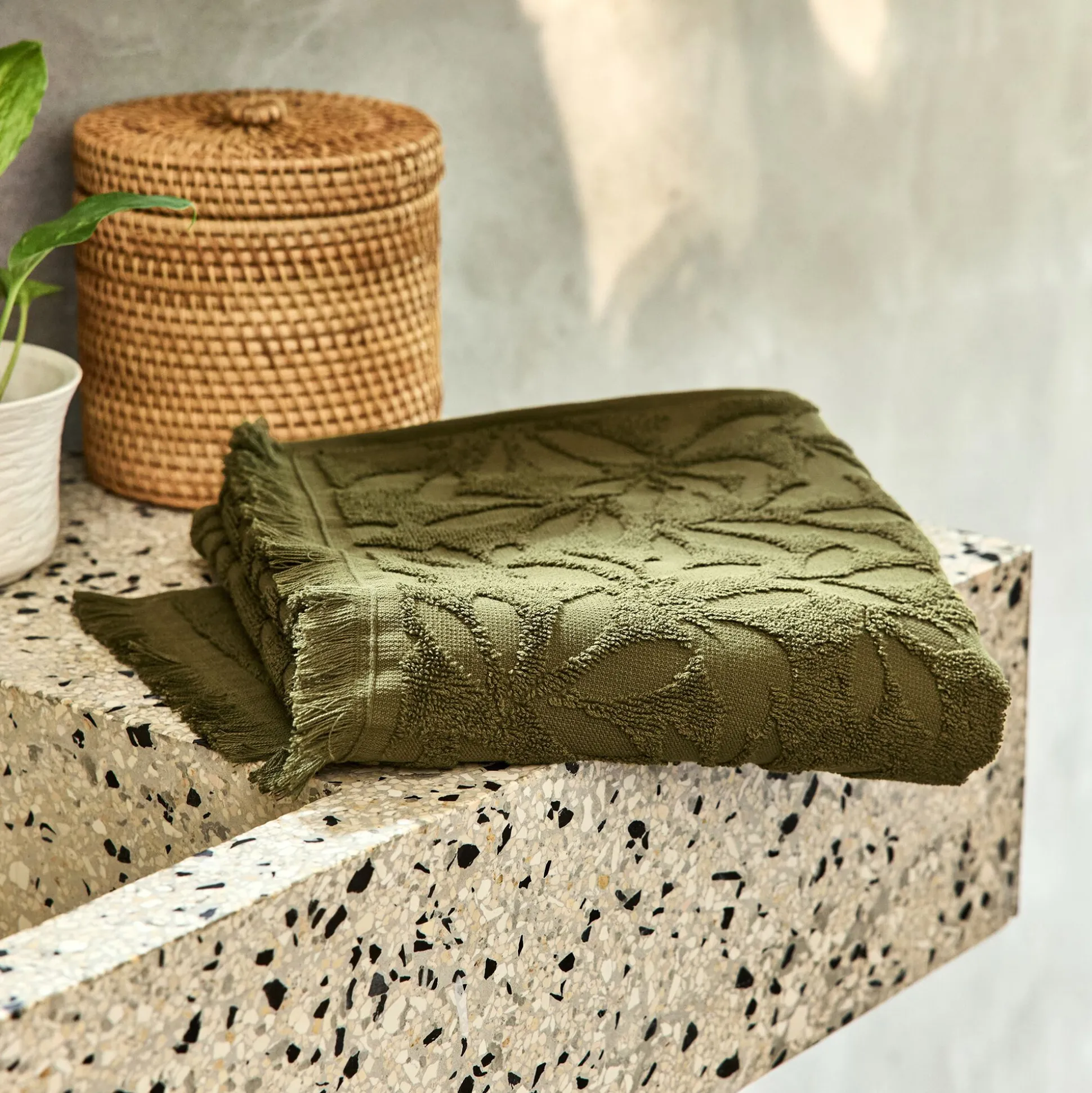 Serviette de toilette en coton motif floral 50x100cm – vert mousse