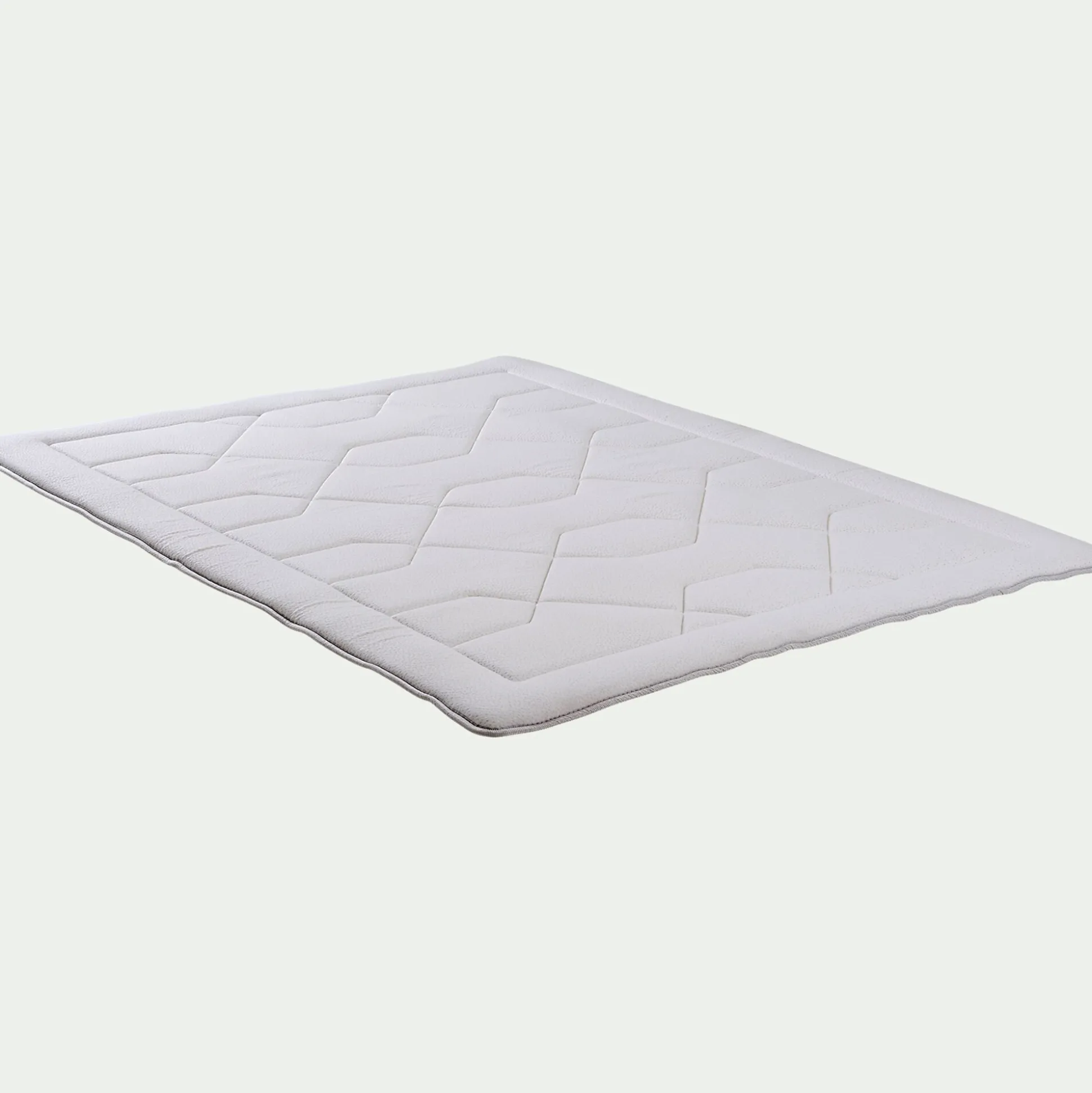Améliorez le confort de votre lit avec de surmatelas 140×200 cm d’une épaisseur de 4 cm. Grâce à ses deux faces, vous pourrez adapter la qualité de votre couchage au fur et à mesure des saisons simplement en le retournant. La face hiver, composée d’une mousse à mémoire de forme vous apportera soutien et moelleux pour d’agréables nuits hivernales. En été, tourner votre surmatelas pour profiter d’un garnissage plus aérien à base de fibres hypoallergéniques qui laisseront les tissus respirés pour plus de fraîcheur.
