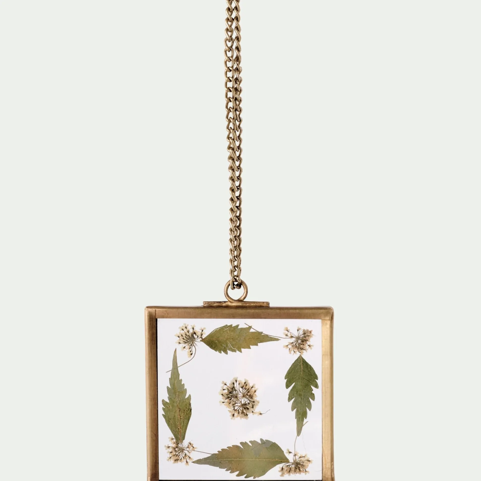 Ce joli lot d’ornements, composés de fleurs séchées, s’accorde parfaitement à votre décoration de Noël. Avec son cadre en laiton carré et son verre qui emprisonne de jolies petites fleurs et leurs feuilles, Junin suspension apporte un côté naturel à votre sapin. Une petite pièce de déco de 5,5×5,5 cm qui donne une touche lumineuse et élégante à cette saison hivernale. Associée avec des éléments dorés et en bois, votre salon adoptera une allure distinguée pour des fêtes de fin d’année lumineuses et raffinées.