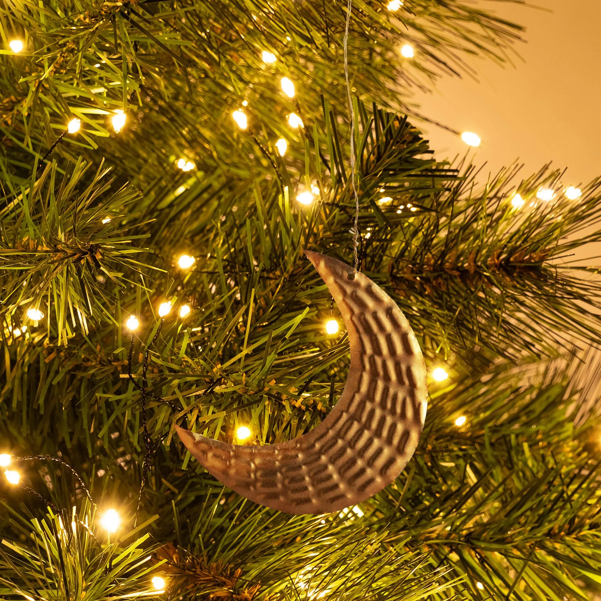 Invitez la magie céleste à votre sapin ! Cette suspension lune métallisée dorée apporte un éclat chaleureux et une touche onirique à votre décoration de Noël. Sa teinte dorée capte la lumière, créant une ambiance féérique et sophistiquée. L’accessoire parfait pour un sapin qui sort de l’ordinaire. Offrez une décoration dorée qui insuffle rêve et élégance à vos fêtes.