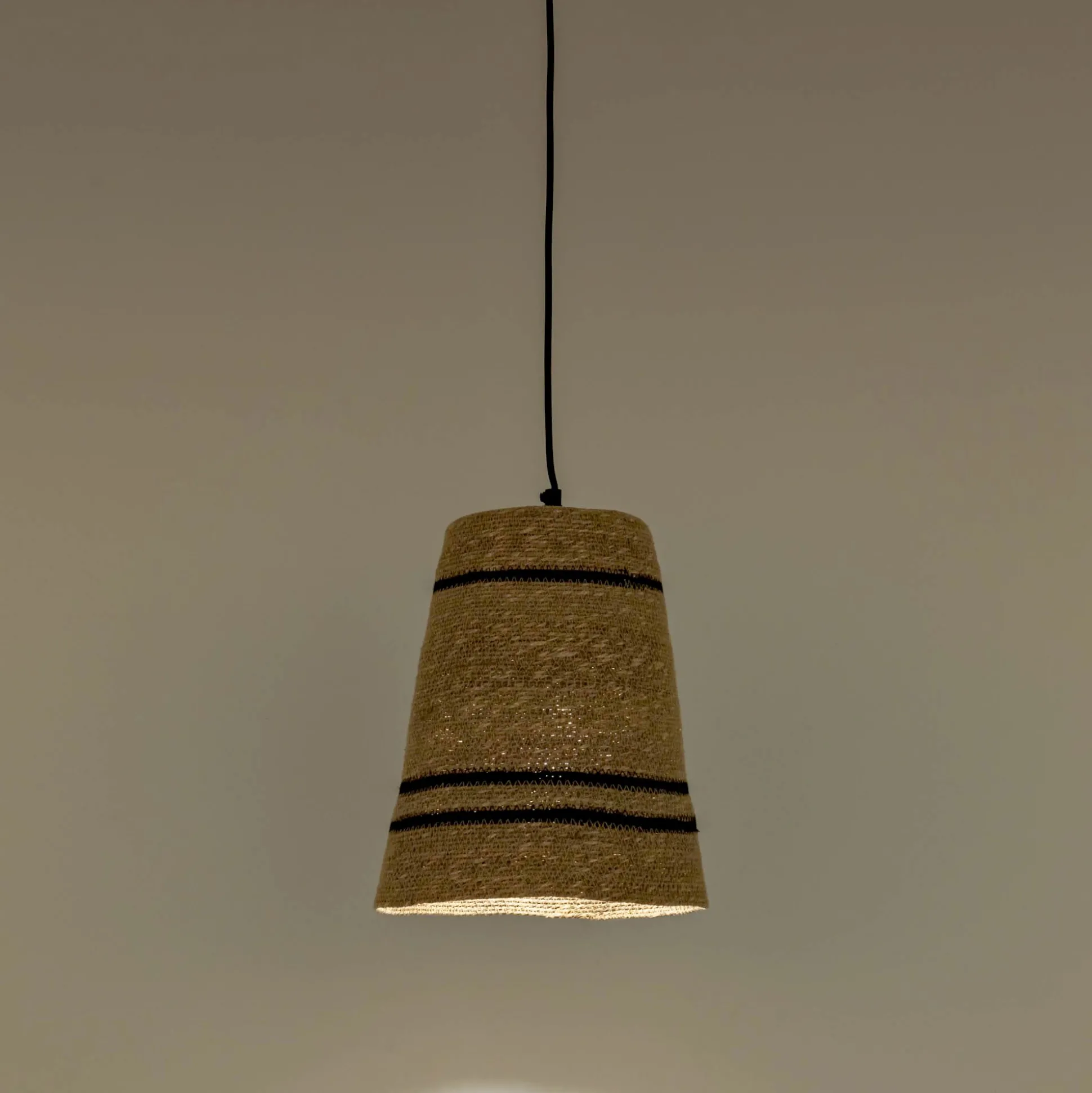 Découvrez cette jolie suspension en jonc de mer habilement tressée. C’est un bel élément de déco qui saura trouver sa place chez vous. Son coloris naturel sublimé par un détail noir, fait de luminaire tout en longueur une pièce unique remplie de charme. Cette suspension électrifiée est idéale pour votre intérieur. Vous pouvez l’associer avec une autre suspension naturelle pour créer un bel ensemble. Souple, chaque abat-jour présente un galbe particulier qui peut être modelé selon vos envies.