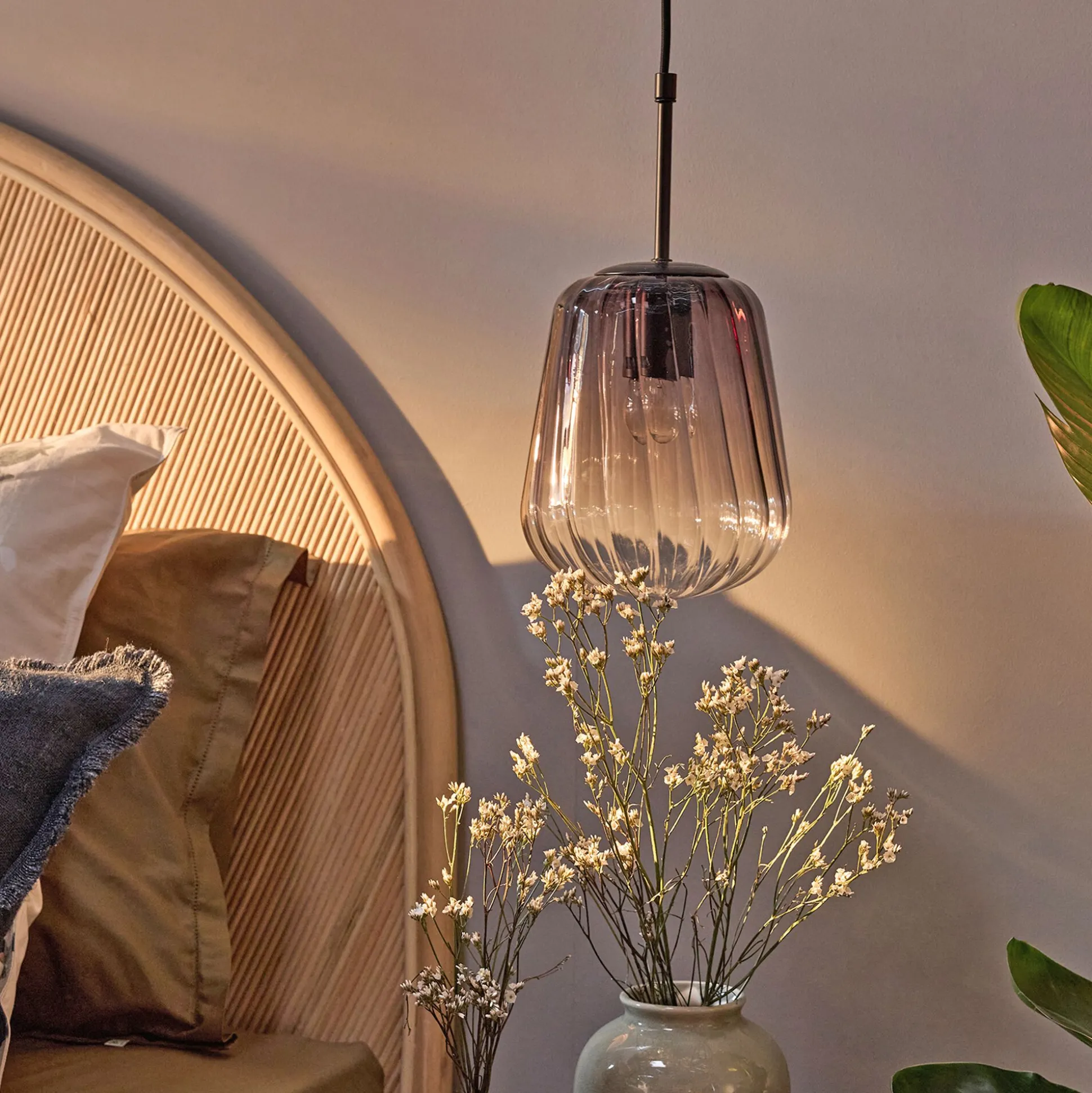 Élégante et moderne, la suspension électrifiée Oromia offre instantanément à la pièce un côté design. Sa forme arrondie met en avant un magnifique dégradé de couleur, passant du gris au transparent. Cette transition est mise en valeur par un verre en relief : un choix décoratif qui donne de la profondeur à la décoration. Parfaite pour le salon, la salle à manger ou la chambre, cette suspension en verre diffuse une lumière douce et chaleureuse pour un espace accueillant.