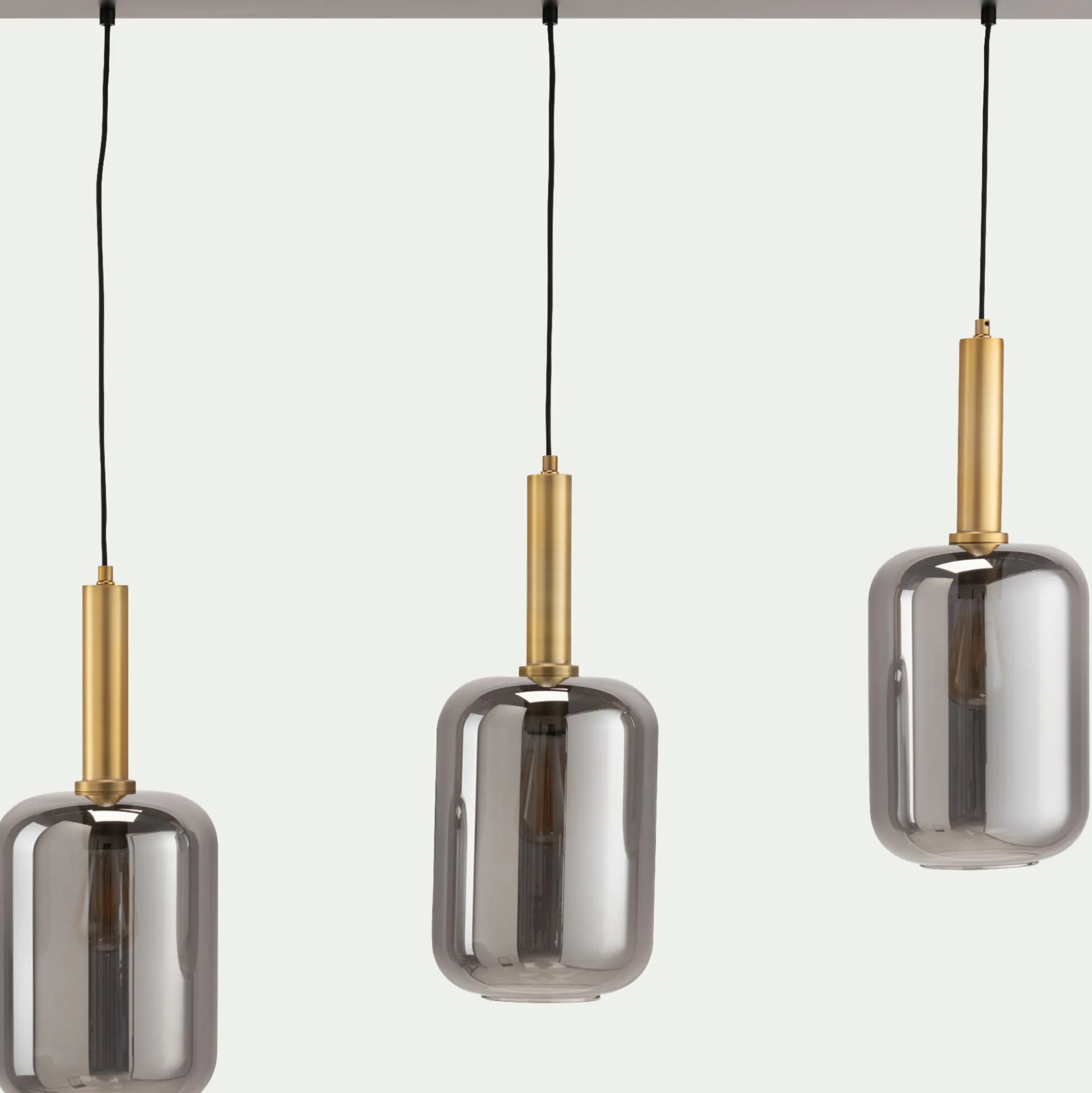 Suspension en acier à 3 globes en verre fumé – noir