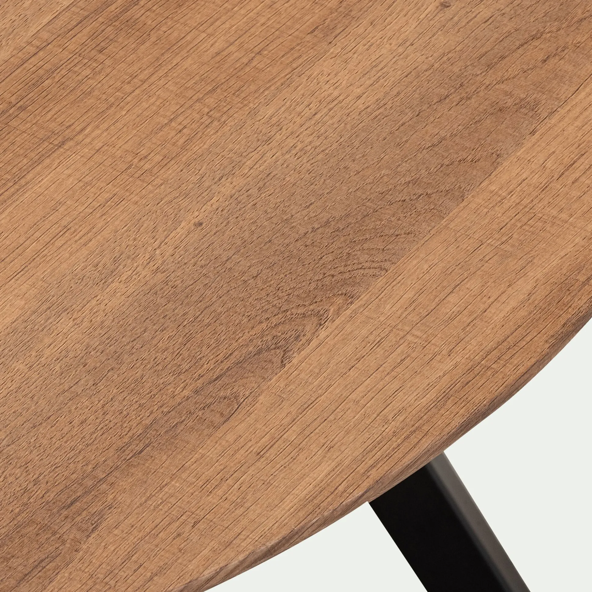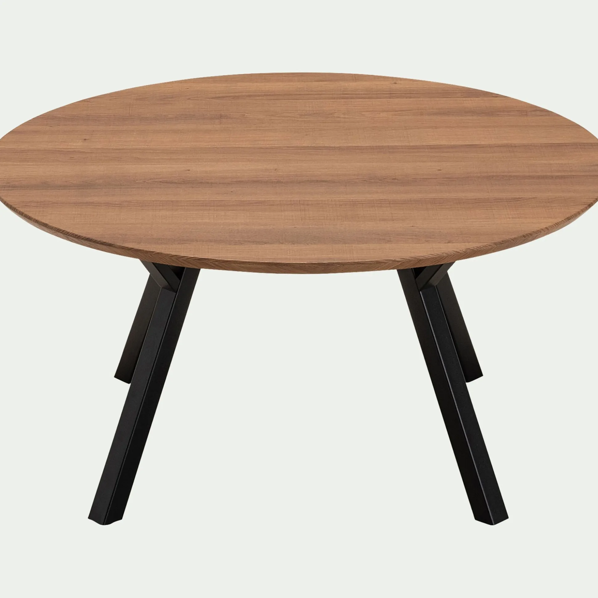 Apportez douceur et caractère à votre salon avec la table basse Octovie. Cette table basse présente un grand plateau rond de 80 cm de diamètre. Ce dernier se tient à 40 cm de hauteur grâce aux quatre pieds biseautés. Le plateau en bois foncé se marie à merveille au piètement noir. Ces coloris neutres participent à un design intemporel et polyvalent. Cette table basse en bois convient aussi bien au style naturel, contemporain qu’industriel. Tout en rondeur, ce petit meuble inspire une décoration harmonieuse.