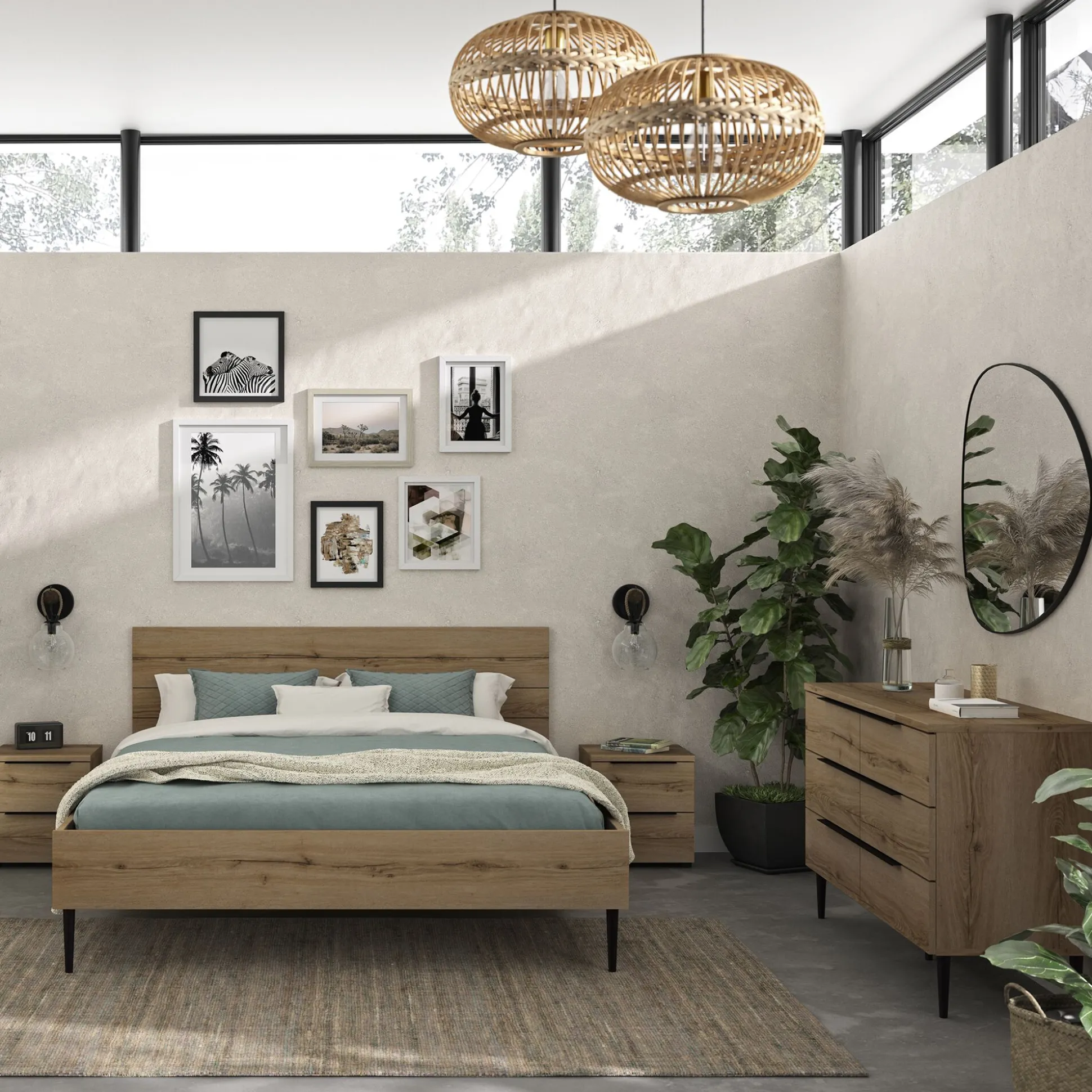 Pour un coin nuit pratique et cocooning, rien de tel qu’une table de chevet en bois. La table de nuit Lucian permet d’exposer une lampe de chevet, un livre, une petite plante verte ou encore une boite à bijoux. Dans ses deux tiroirs de rangement, vous pourrez stocker vos prochaines lectures et d’autres accessoires pour des nuits reposantes. Cette table de chevet en bois arbore un design rustique, relevé par deux poignées en aluminium noir. Ce détail moderne contrebalance le côté naturel et apporte une touche industrielle à l’ensemble. Ce petit meuble participe à l’organisation mais surtout à une décoration chaleureuse.