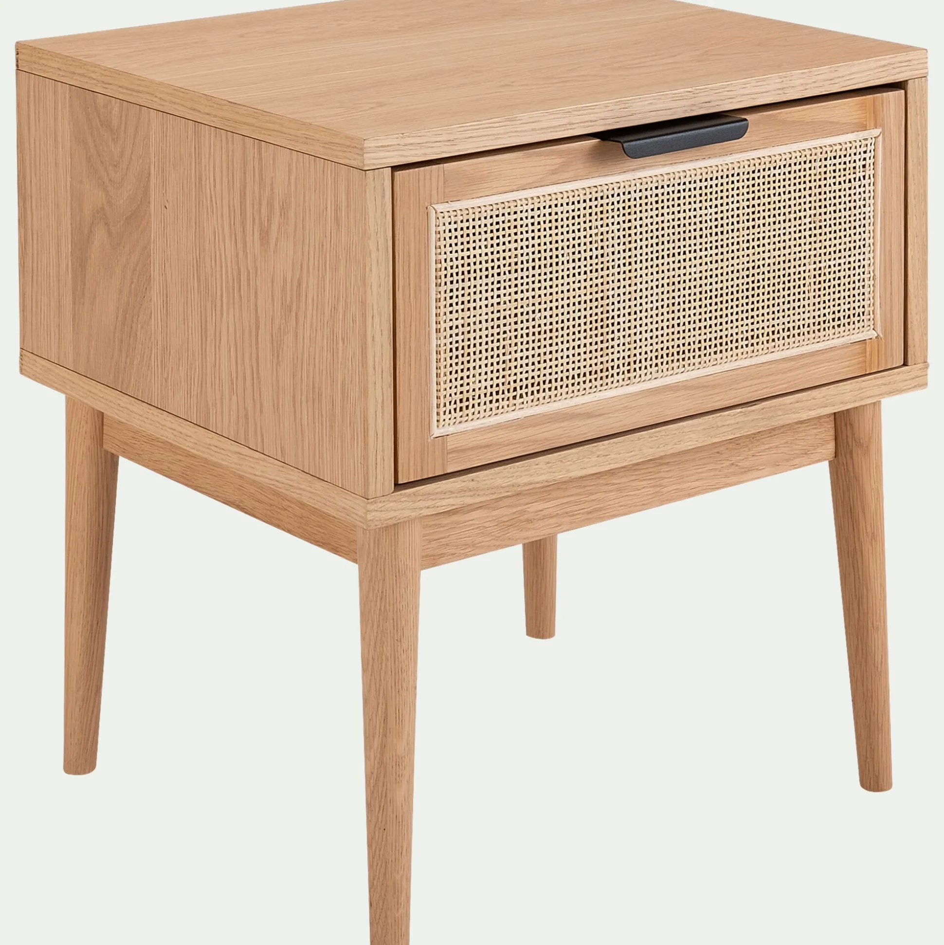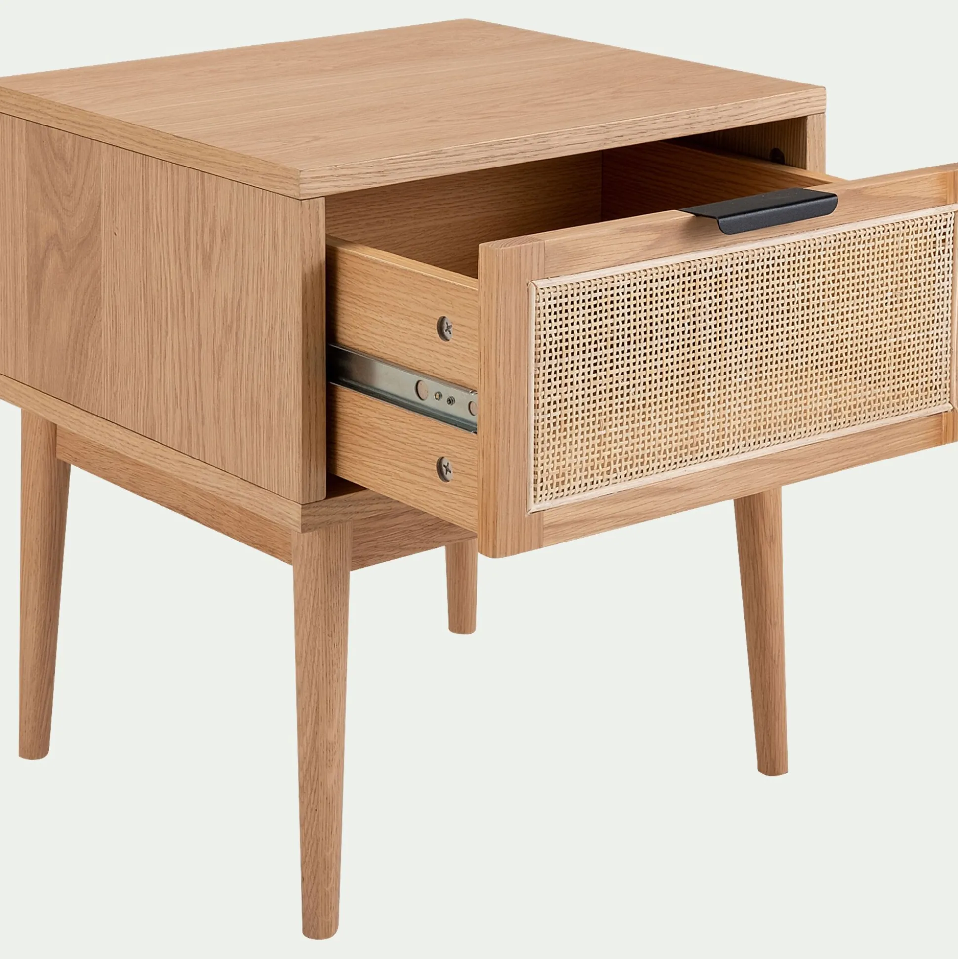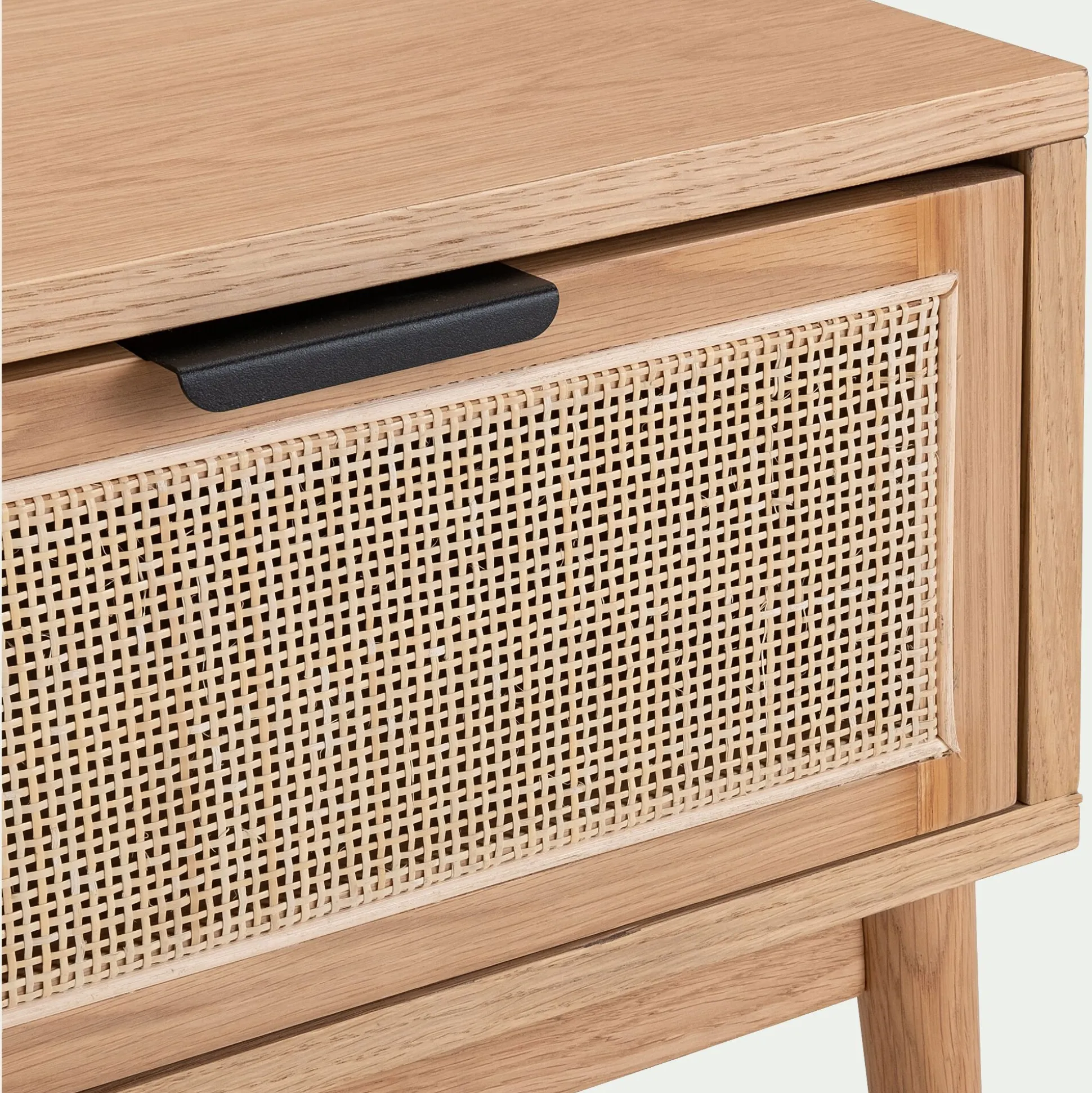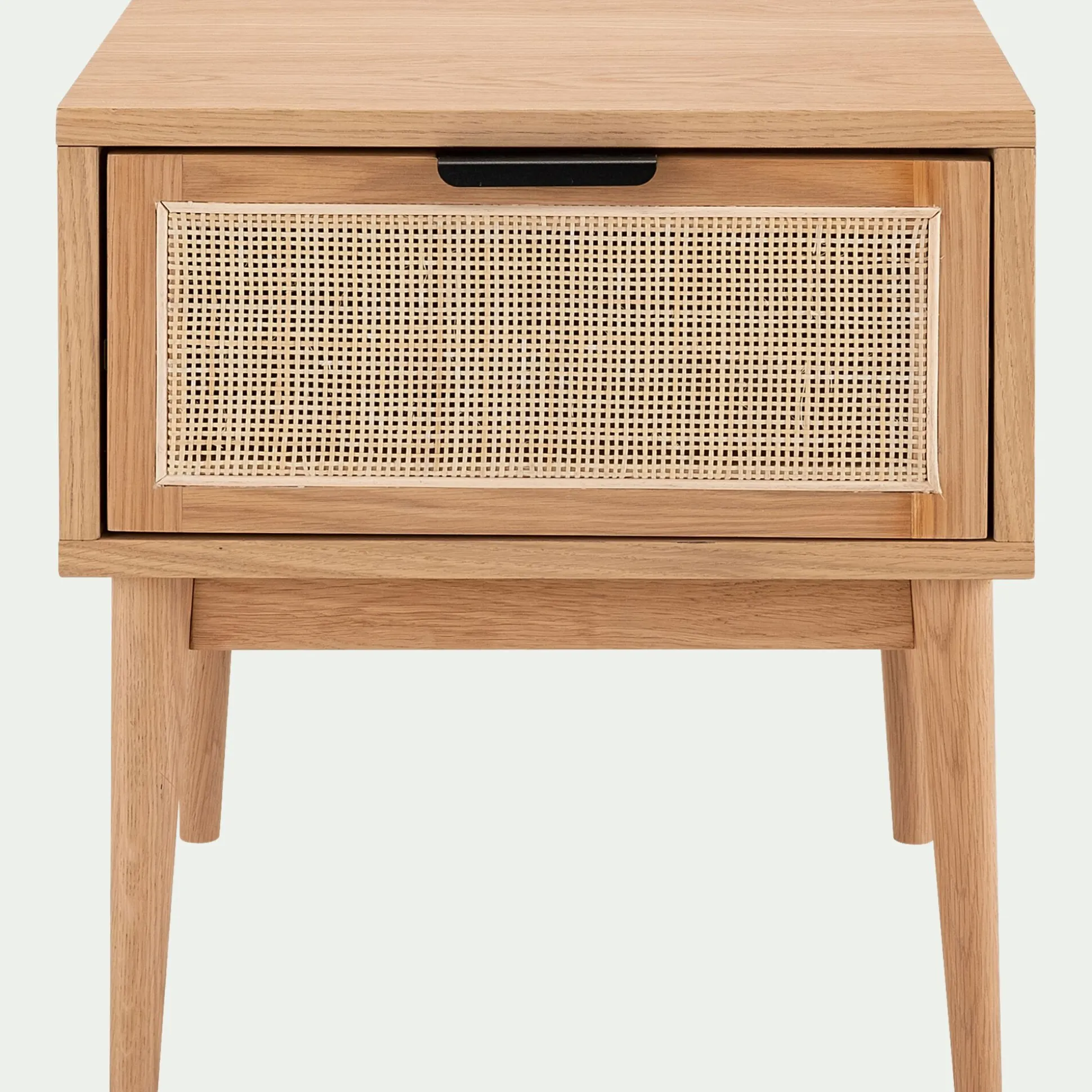 Cadre en chêne massif certifié FSC® (20mm d’épaisseur), façade du tiroir en canne naturelle.