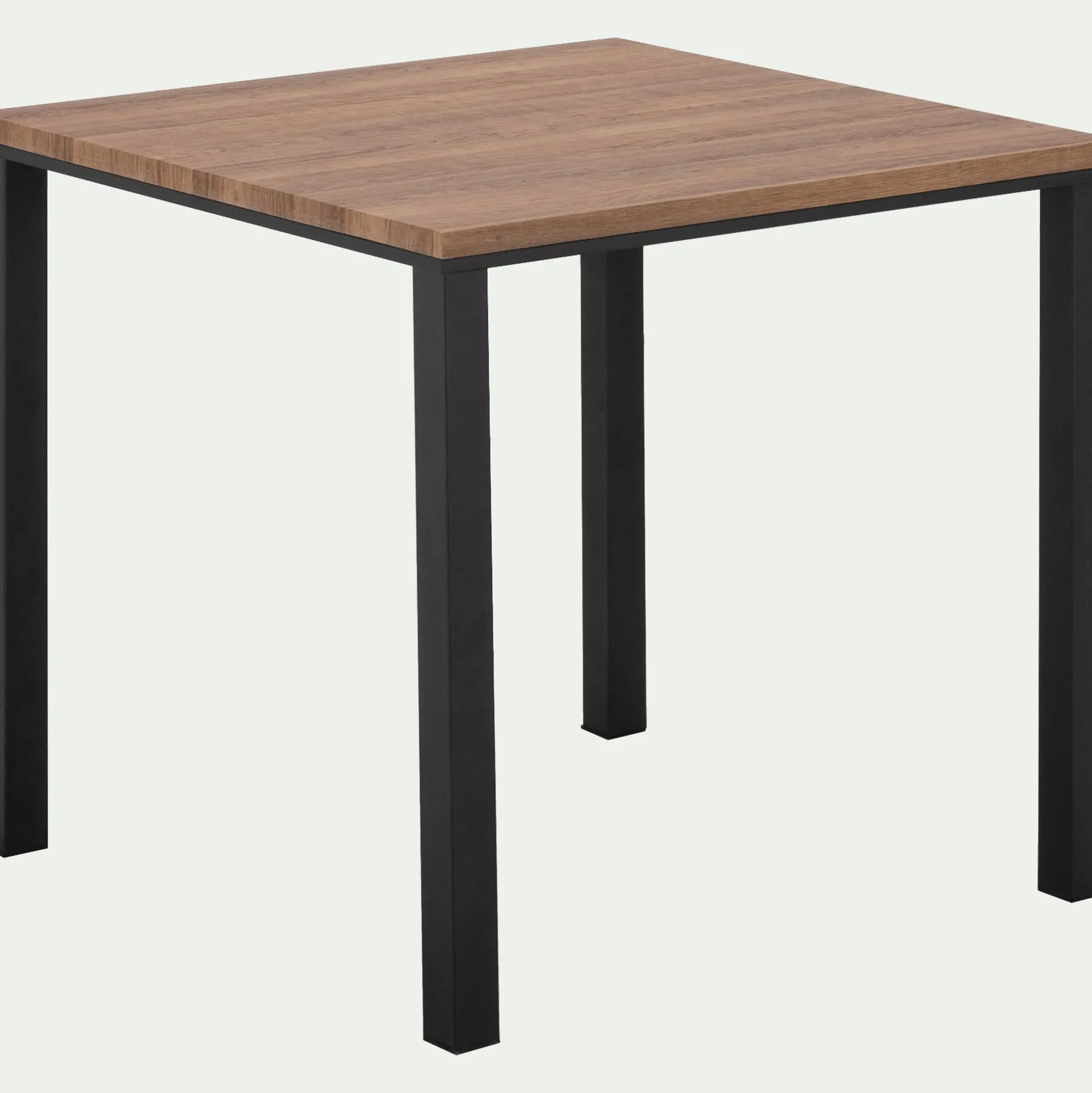 Laissez vous séduire par la simplicité de cette table de repas carrée. Sobre mais efficace, elle arbore un style naturel par son plateau couleur chêne contrasté par un style industriel que l’on retrouve dans son piétement en métal. Authentique, cette table de repas se mariera aisément avec le reste de vos meubles en bois. Dans une salle à manger ou une cuisine, elle invite à la convivialité autour d’un repas ou d’un apéritif.