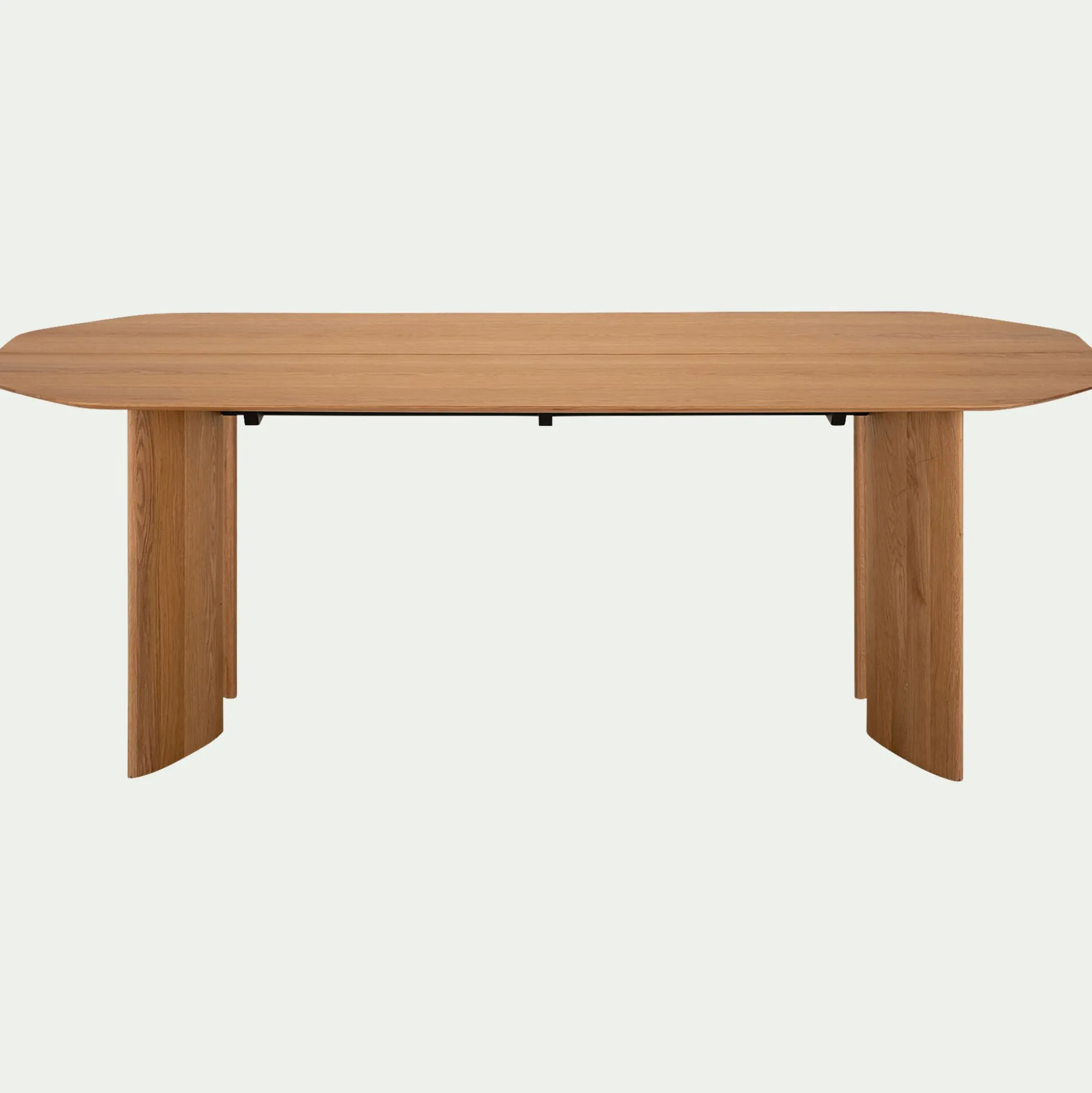 Aménagez une salle à manger contemporaine avec cette belle table de repas en bois. Toute en rondeur, cette table en bois arbore un plateau ovale ainsi que des pieds arrondis en chêne massif. Cette table design est aussi belle que pratique. De 220 cm de long, elle permet d’accueillir jusqu’à 8 convives pour des moments de partage et de convivialité. Cette table de repas ovale est un coup de coeur qui sublimera la pièce en apportant douceur et caractère. Complétez ce joli meuble avec de belles chaises en tissu pour créer un bel ensemble de mobilier.