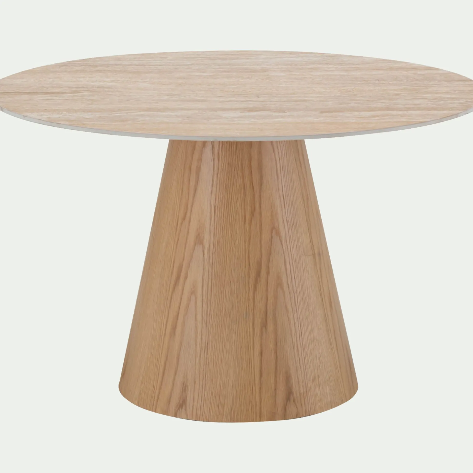 La table de repas Castellane séduit par l’élégance de ses matières et la douceur de ses lignes. Son plateau rond en céramique repose sur un piètement en bois, une alliance raffinée qui apporte du caractère à la salle à manger. Avec ses 120 cm de diamètre, elle accueille confortablement entre 4 et 6 personnes tout en laissant une bonne circulation autour. Une table conviviale au style contemporain, pensée pour embellir le quotidien.